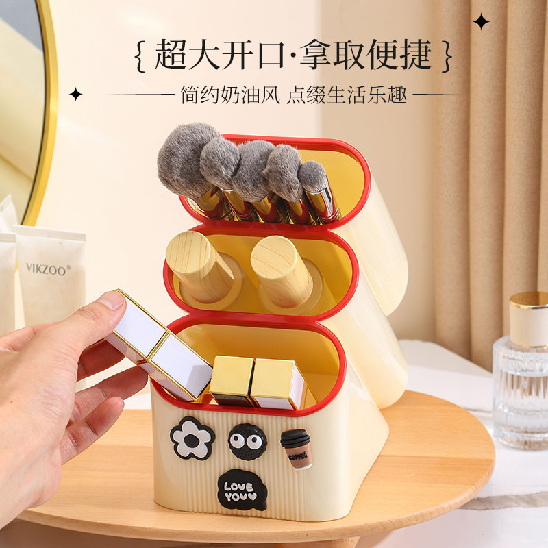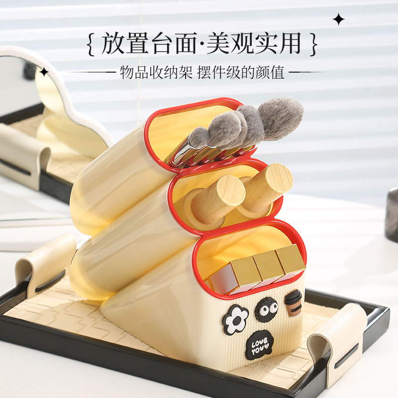 笔筒收纳盒学生桌面高颜值创意可爱大容量斜插式多层化妆品文具盒