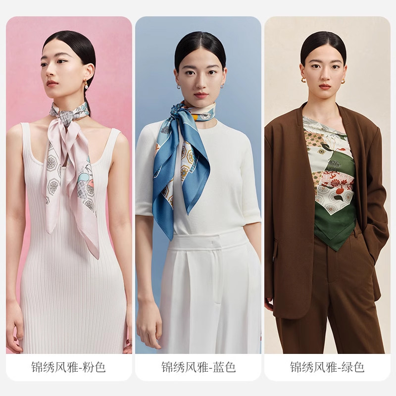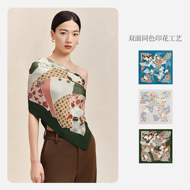 万事利新款100%桑蚕丝丝巾女真丝围巾大方巾生日礼物--锦绣风雅