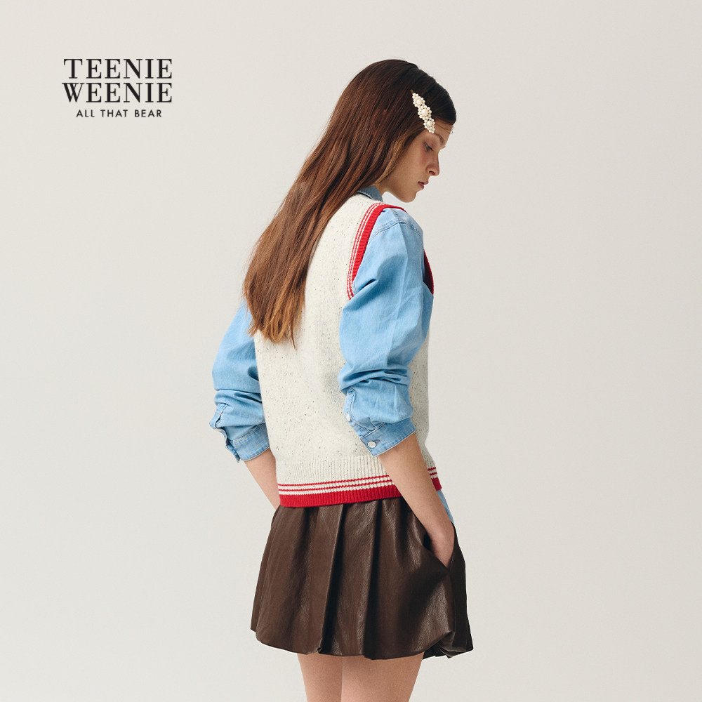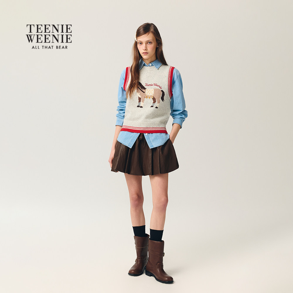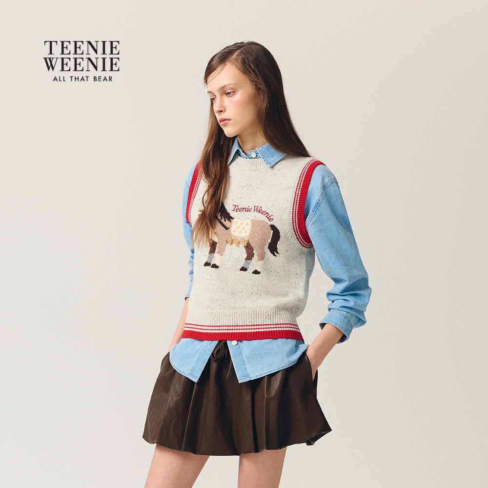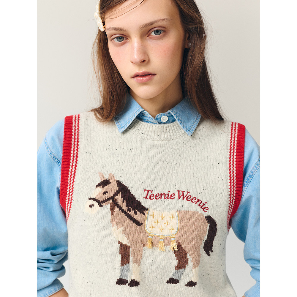 TeenieWeenie小熊女装毛针织衫26春新款新年小马元素提花圆领背心