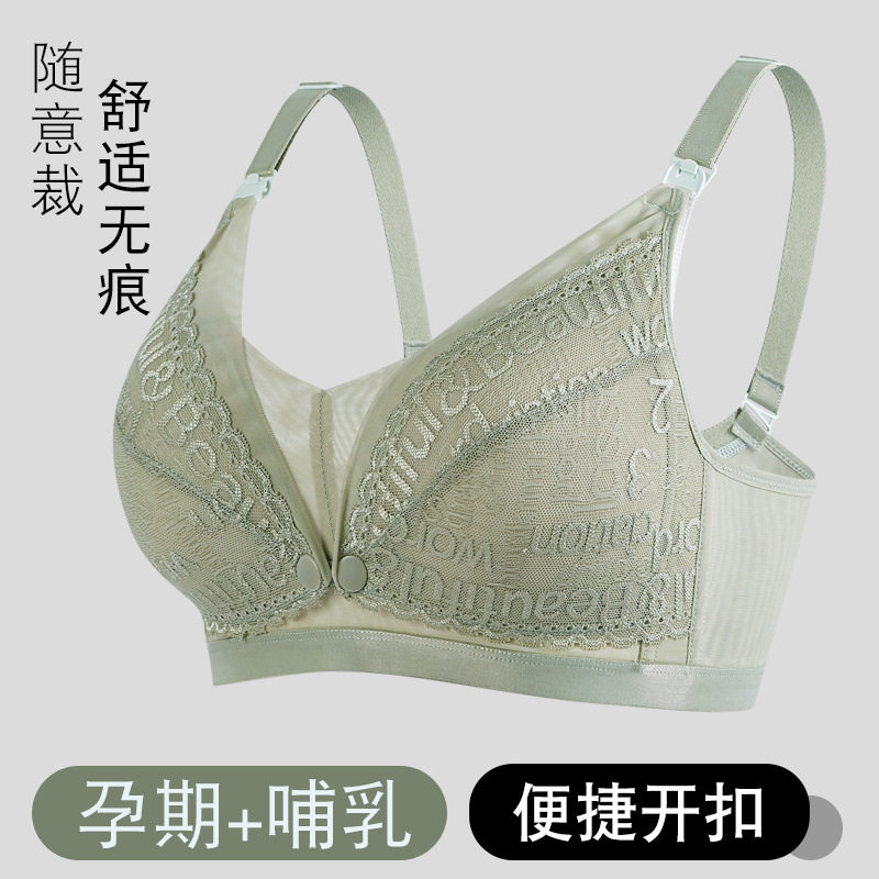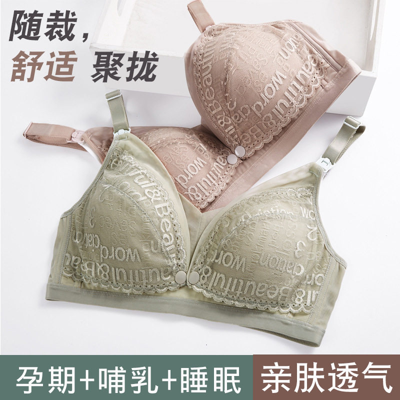 哺乳文胸大码内衣女无钢圈前扣背心蕾丝美背聚拢内衣产后喂奶内衣