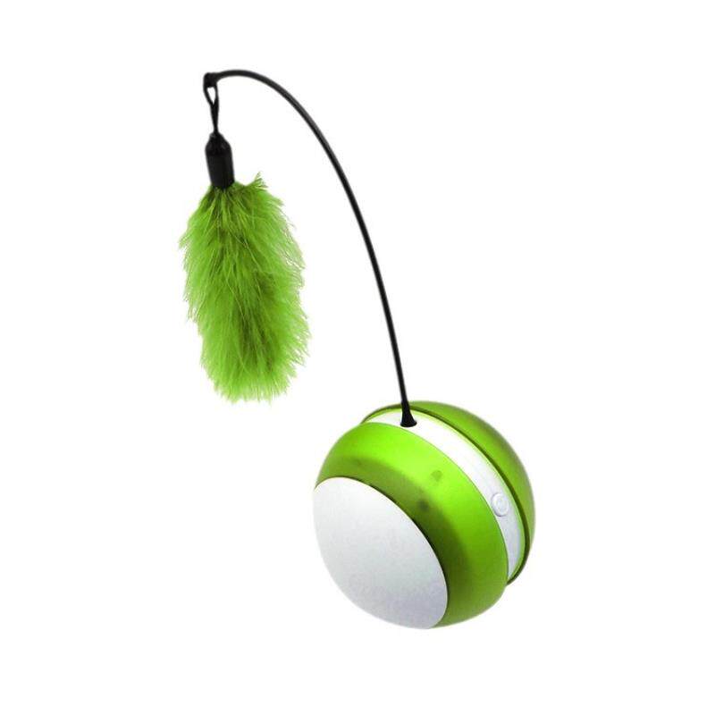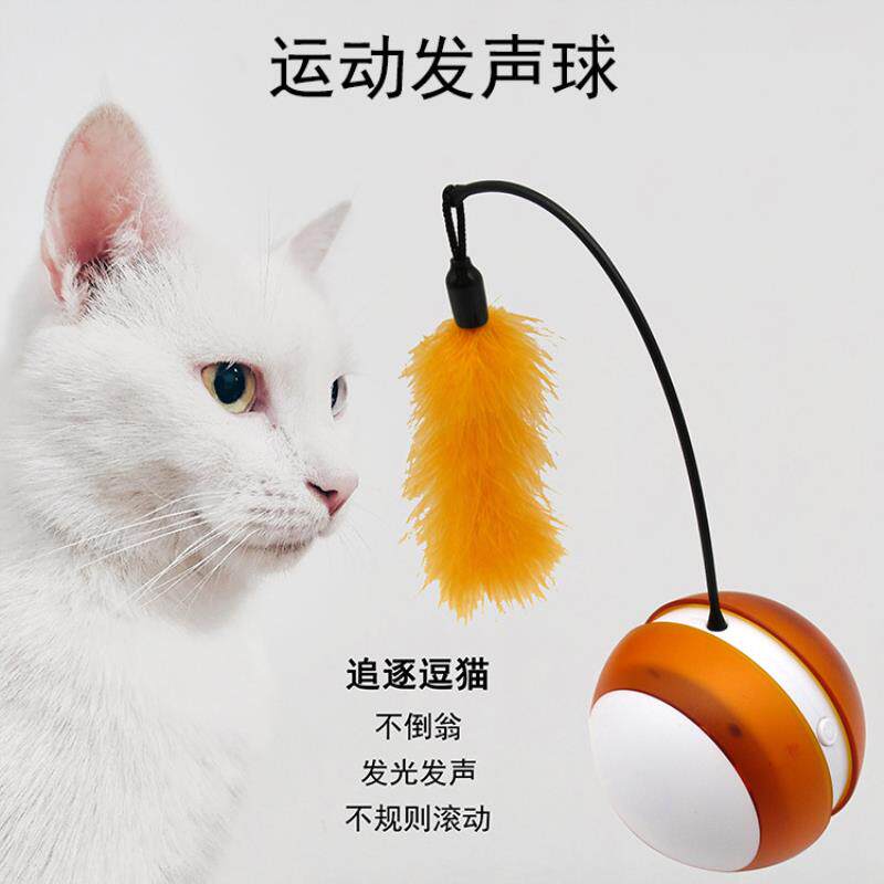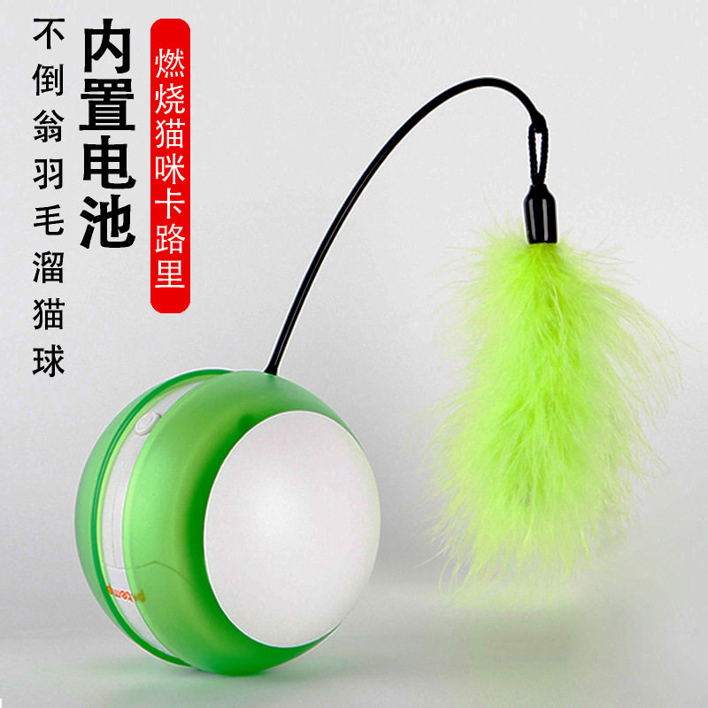 新款不倒翁电动宠物猫玩具 发光发声滚动球带羽毛逗猫棒猫咪玩具
