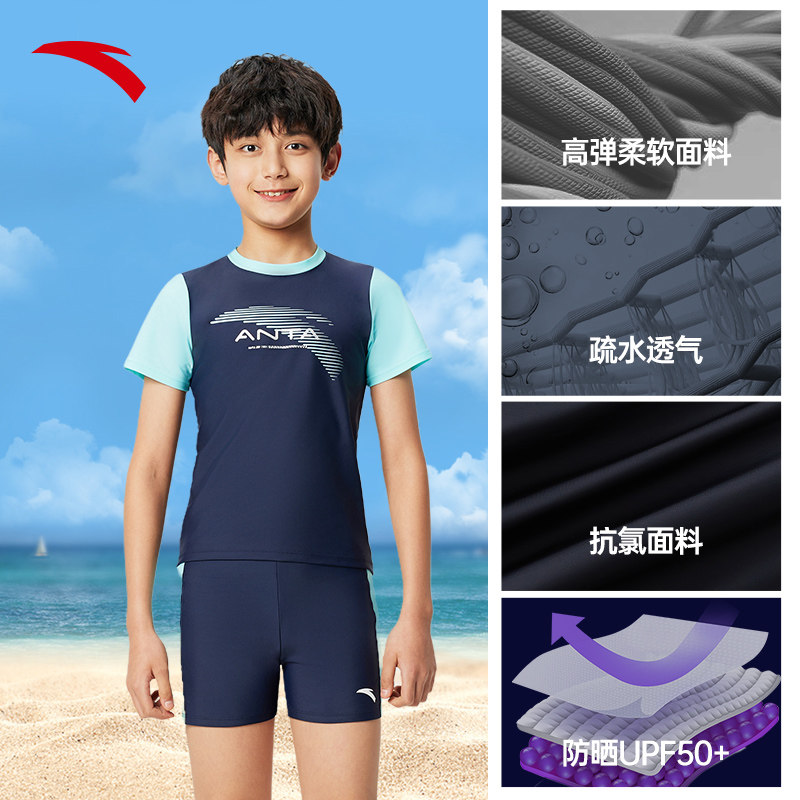 安踏儿童分体泳衣防晒抗氟中大童游泳装备宝宝泳衣裤套装速干泳裤
