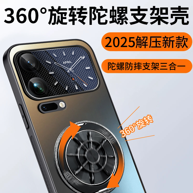 适用小米17promax手机壳新款陀螺支架xiaomi17pro金属镜头air全包防摔磁吸mi十七外壳高级感男超薄女保护套