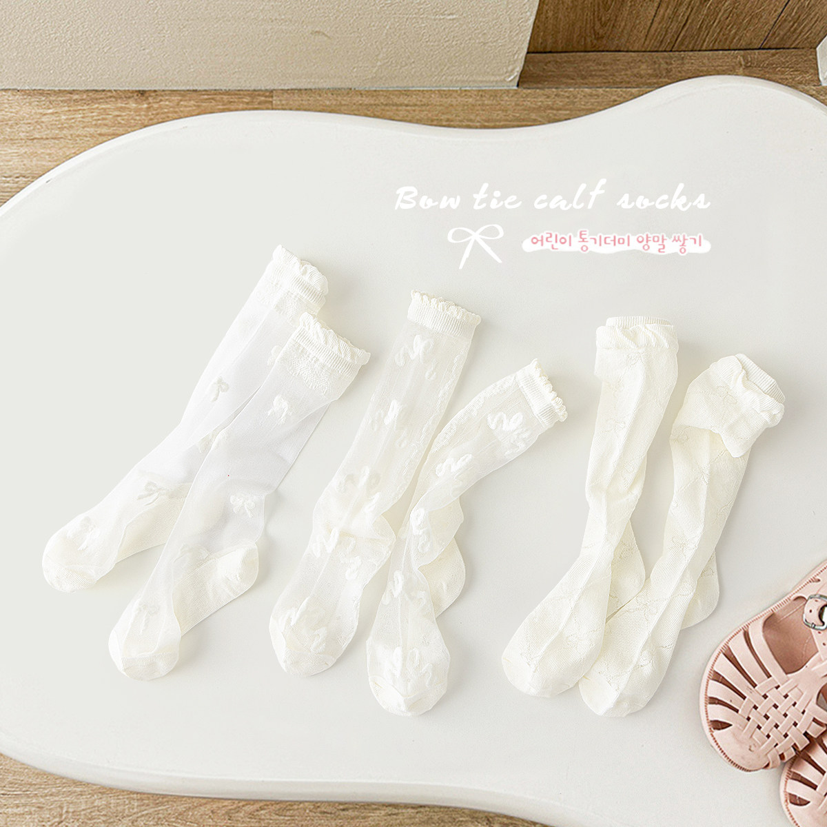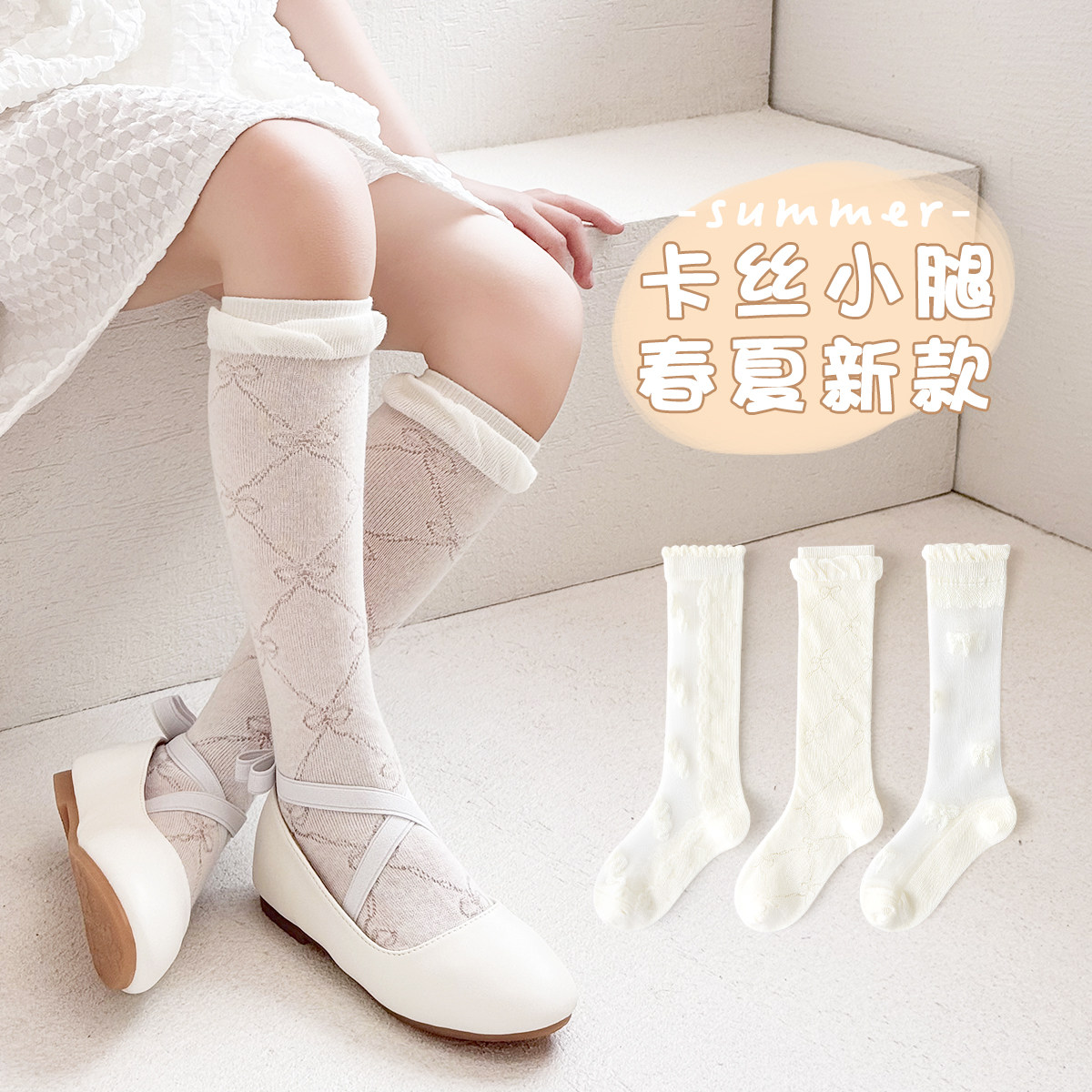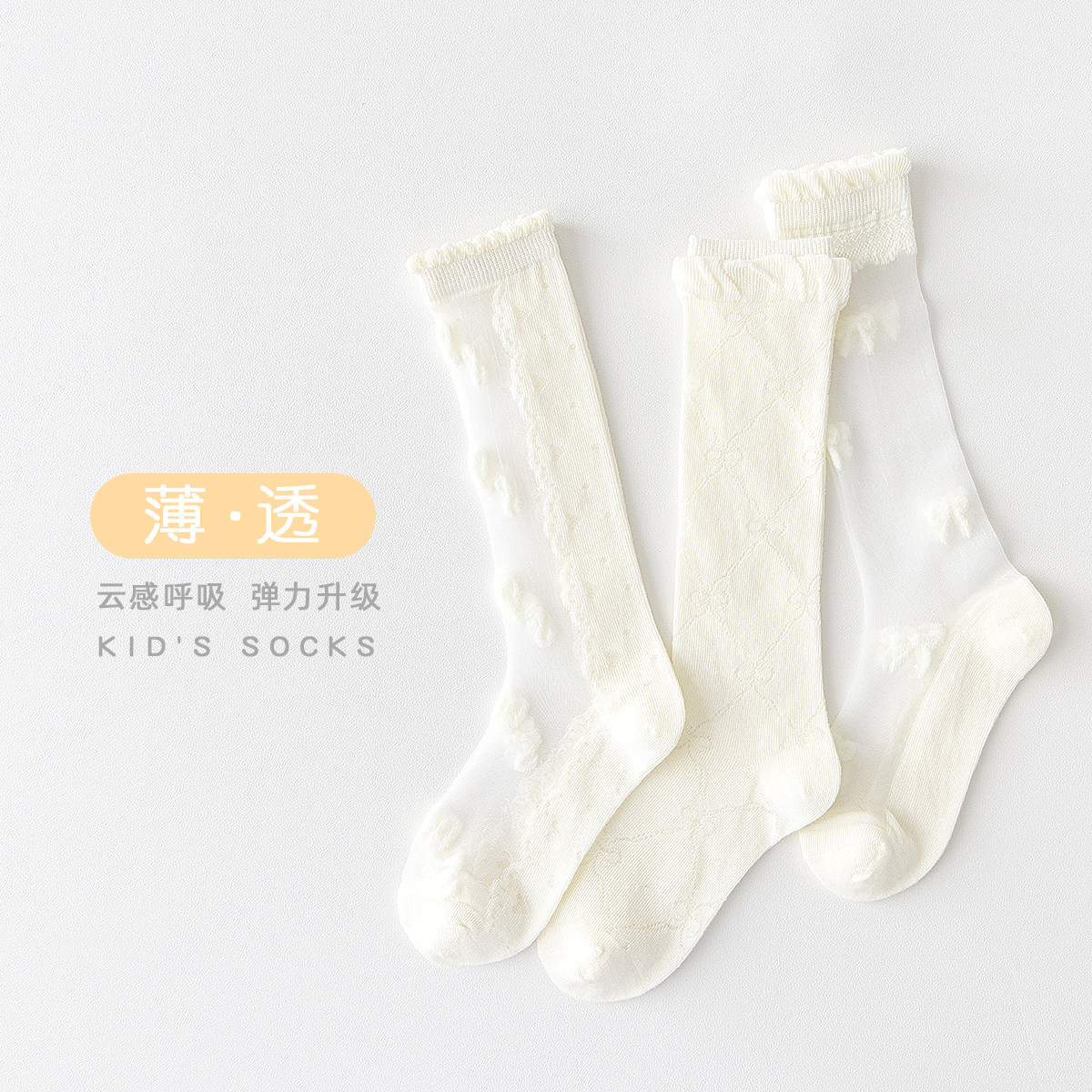 女童小腿袜夏季水晶公主薄款白色长筒袜儿童防蚊中筒袜透气冰丝袜