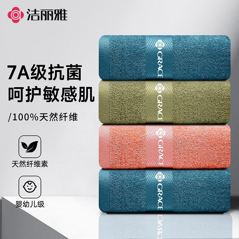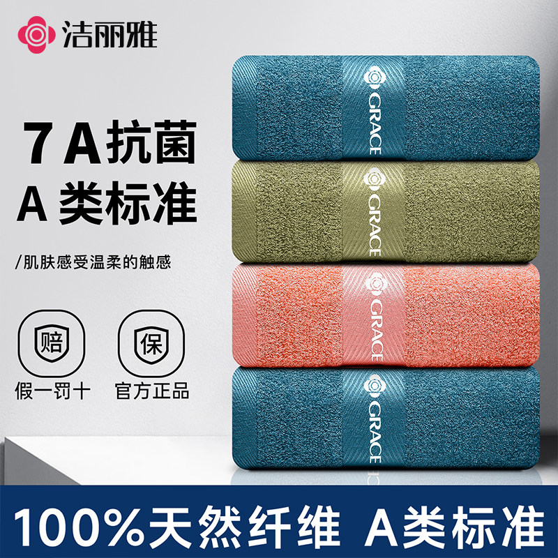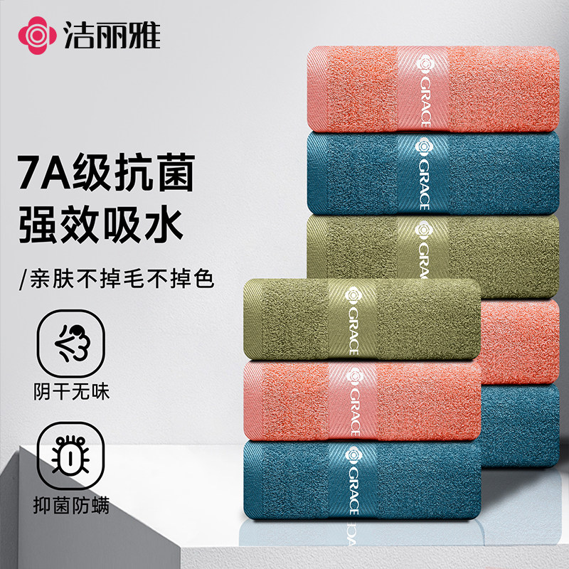 洁丽雅纯棉毛巾5A抑菌加厚吸水成人家用柔软亲肤不易毛不掉絮面巾