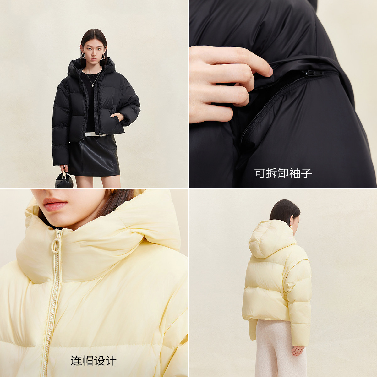 温暖羽绒,可拆卸袖子 灵活混搭