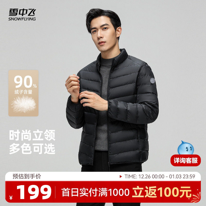 雪中飞2025冬新款男士羽绒服短款商务休闲简约立领时尚轻保暖夹克