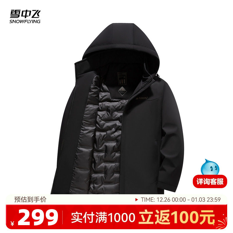 雪中飞极寒羽绒服男中长款加厚保暖冬季外套2025年新款中年爸爸装