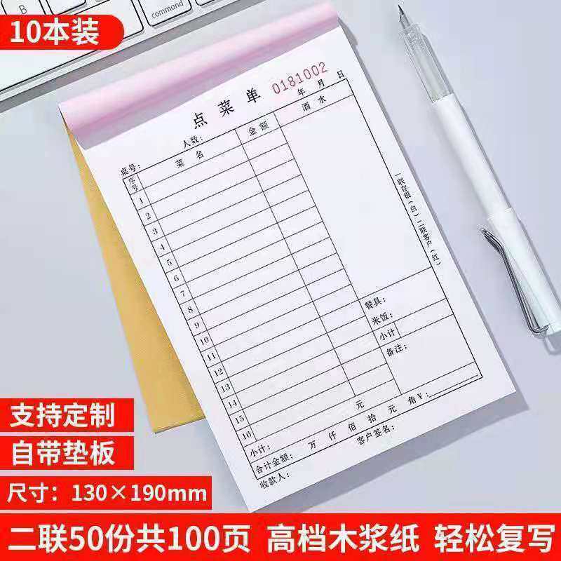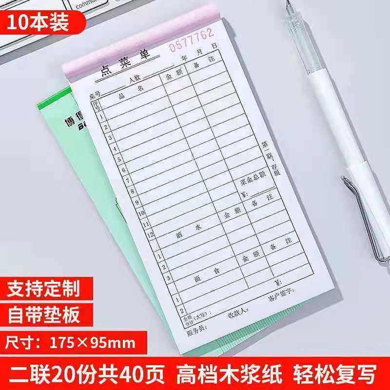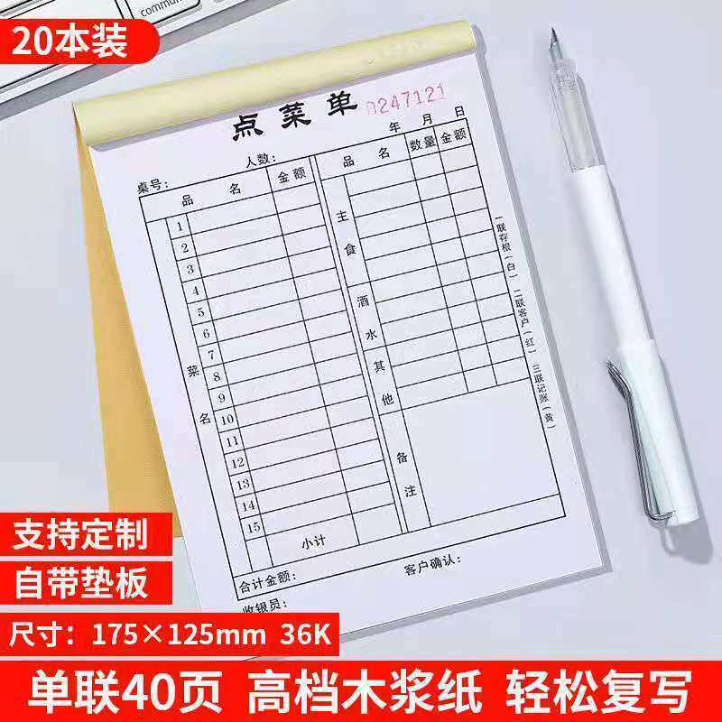 包邮一联菜单单联点菜单餐厅饭店用餐饮单40k不带复写菜单40页/本