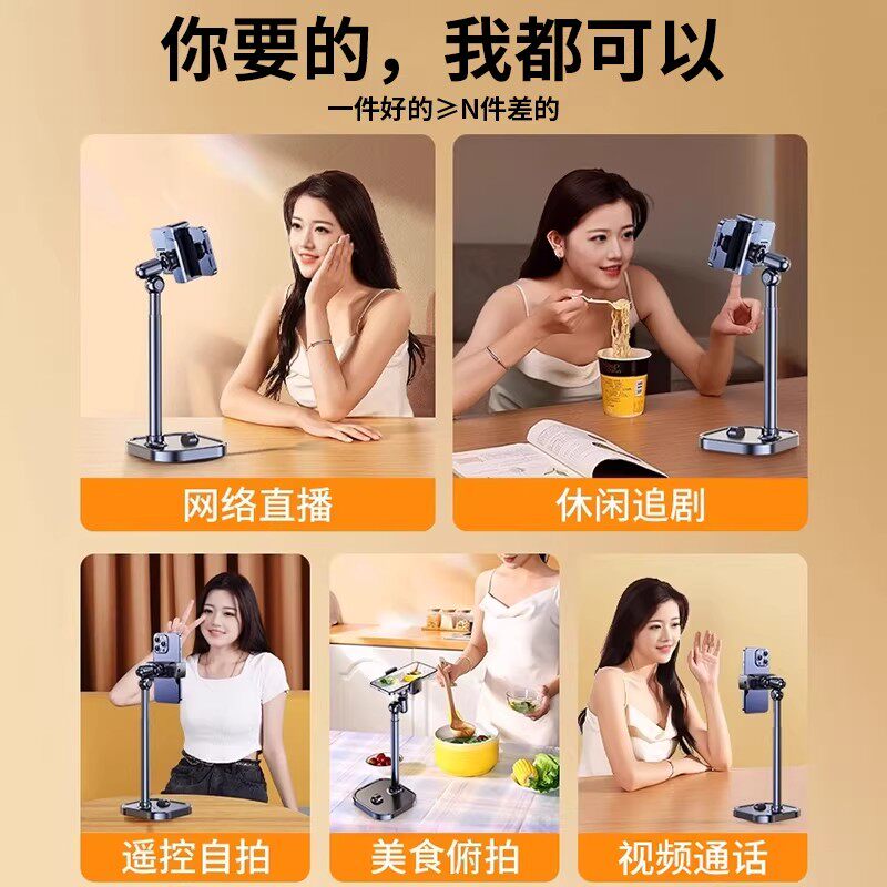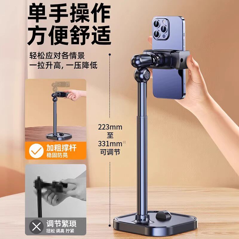 手机桌面支架2026新款直播专用金属拍摄架子懒人通用俯拍抖音支撑架可升降旋转家用铝合金手机架多功能