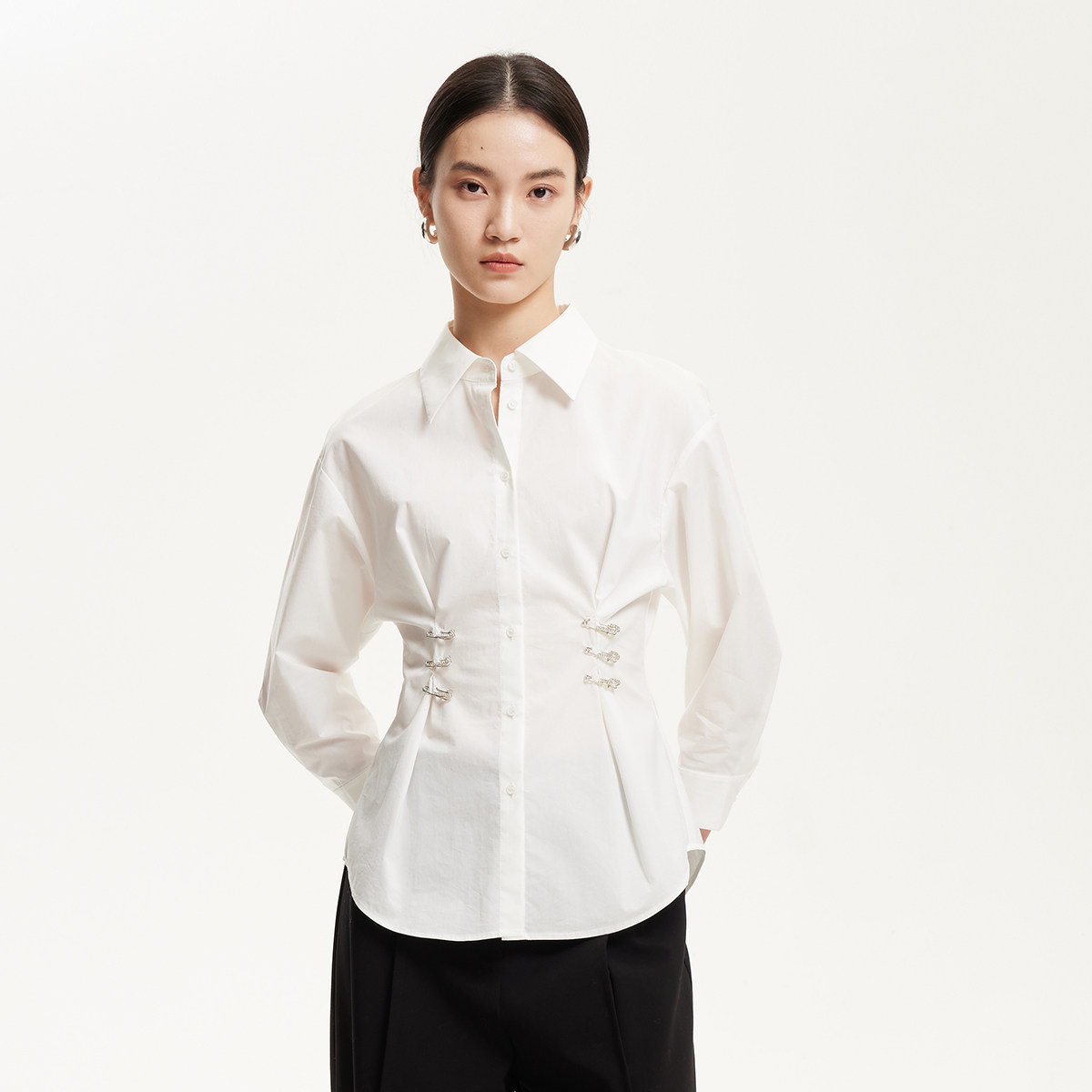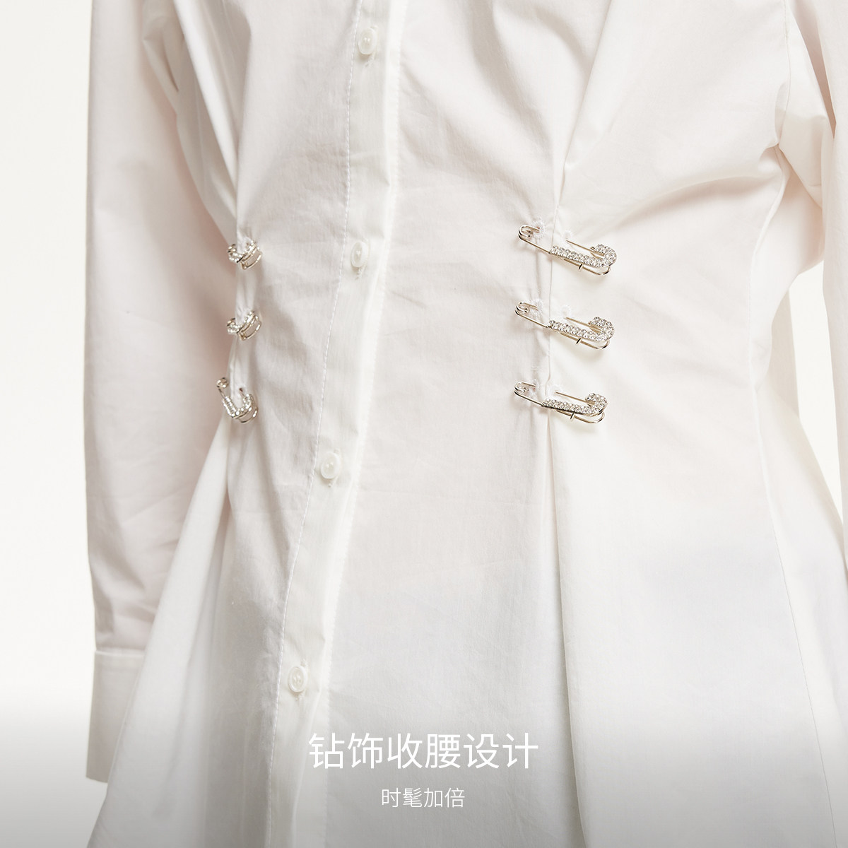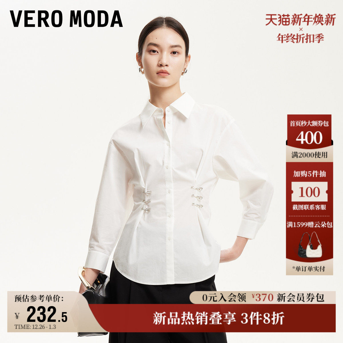 Vero Moda奥莱衬衫女2025秋季新款商场同款翻领收腰金属别针上衣