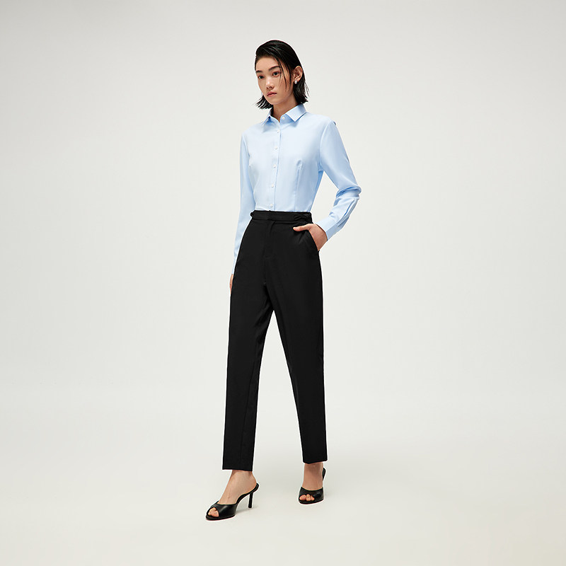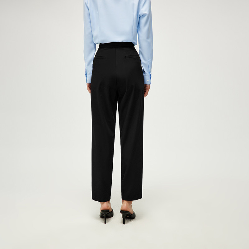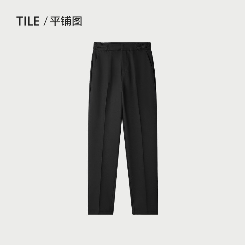 HLA/海澜之家腰头扭结西裤25春秋新款俏皮修身商务通勤锥形裤女装