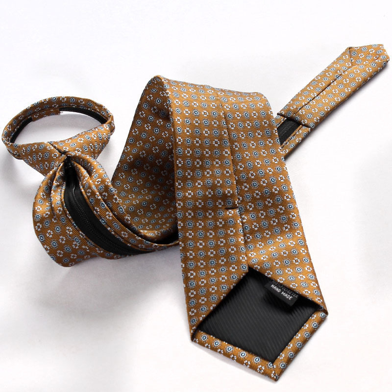 复古领带男正装香槟金免打结懒人咖啡色商务休闲拉链式领带潮8cm