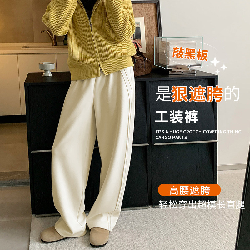 【防泼水】骆驼运动工装裤女冬季加绒休闲裤户外直筒徒步登山裤