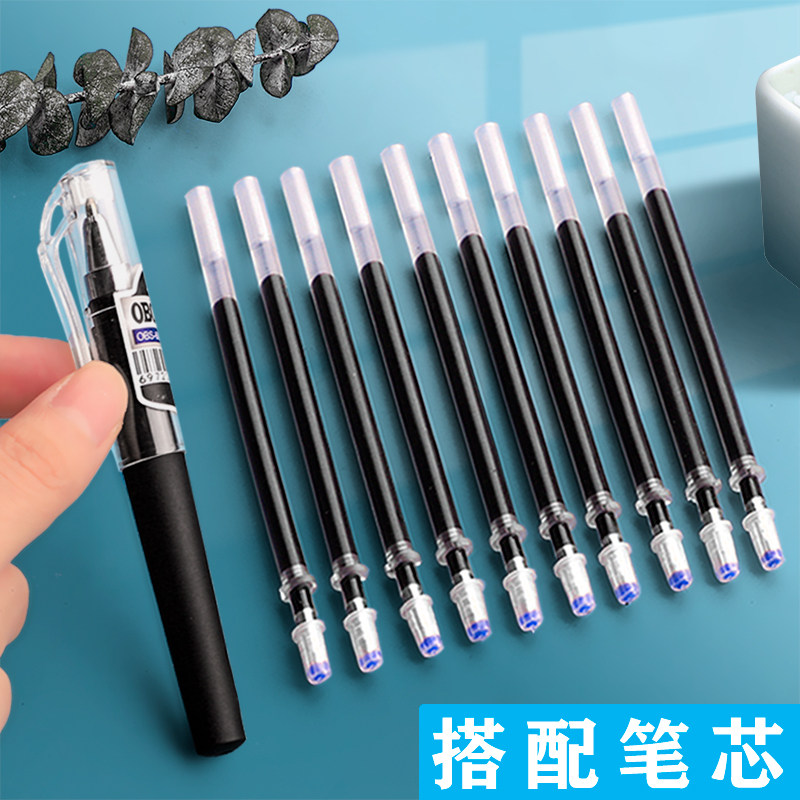 100支按动中性笔笔芯子弹头速干替换芯0.5写字粗笔心学生用按压式碳素水笔芯黑笔摁动批发文具用品送晨光水笔