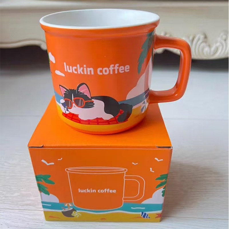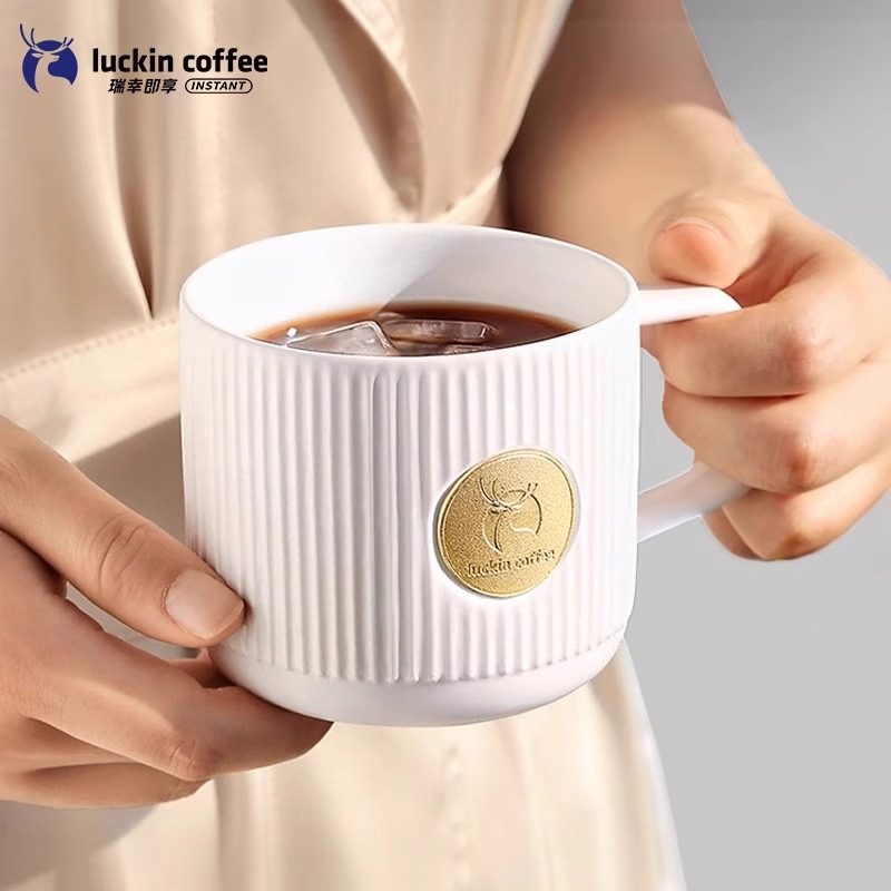瑞幸保温杯马克杯经典款亮光白陶瓷杯创意潮流情侣杯茶杯咖啡杯