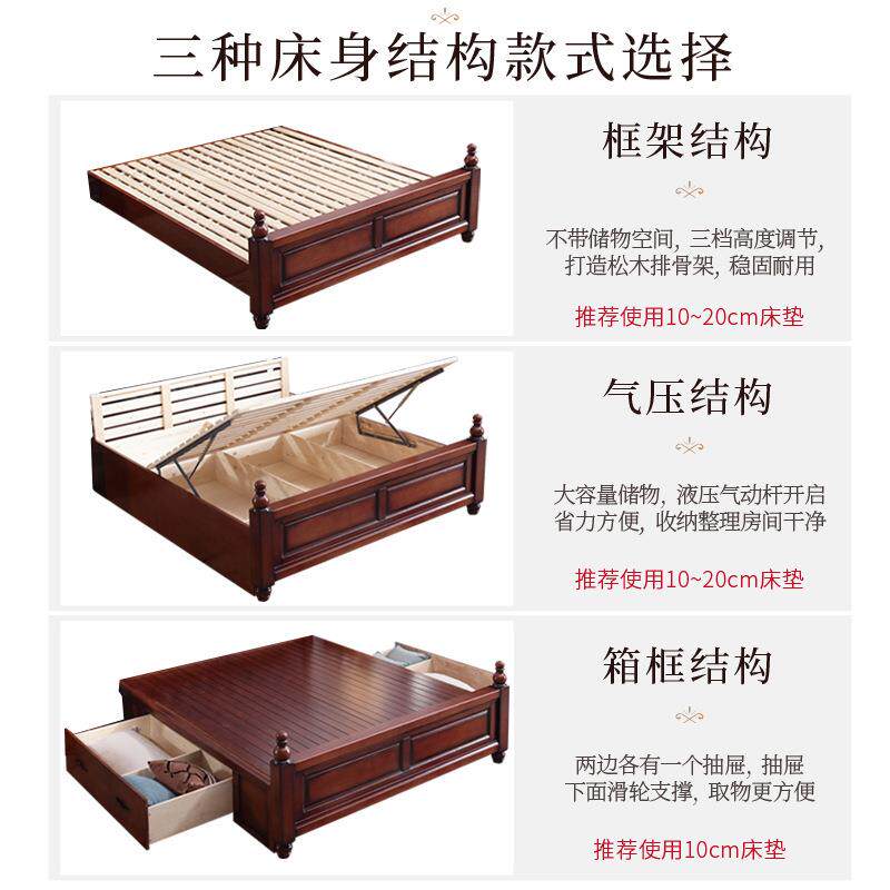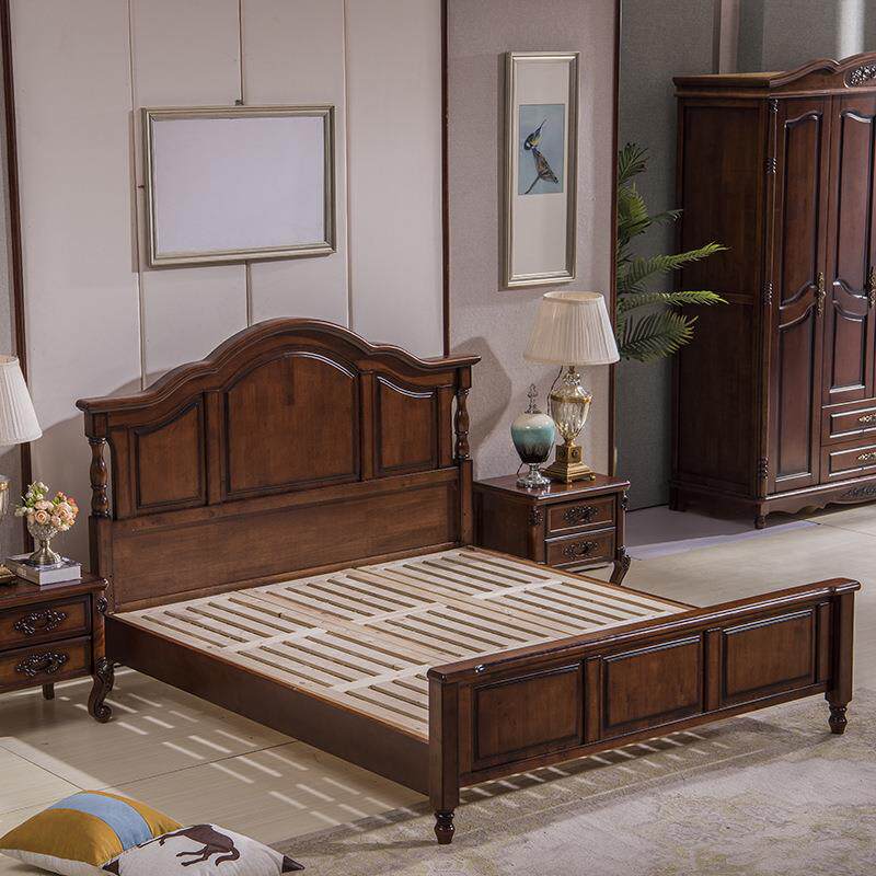 橡胶木实木床双人床美式乡村主卧室套房家具欧式婚床高箱储物床