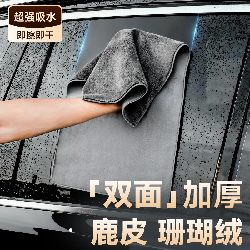 洗车毛巾擦车布专用吸水汽车内饰用品车内麂皮抹布不掉毛双面加厚