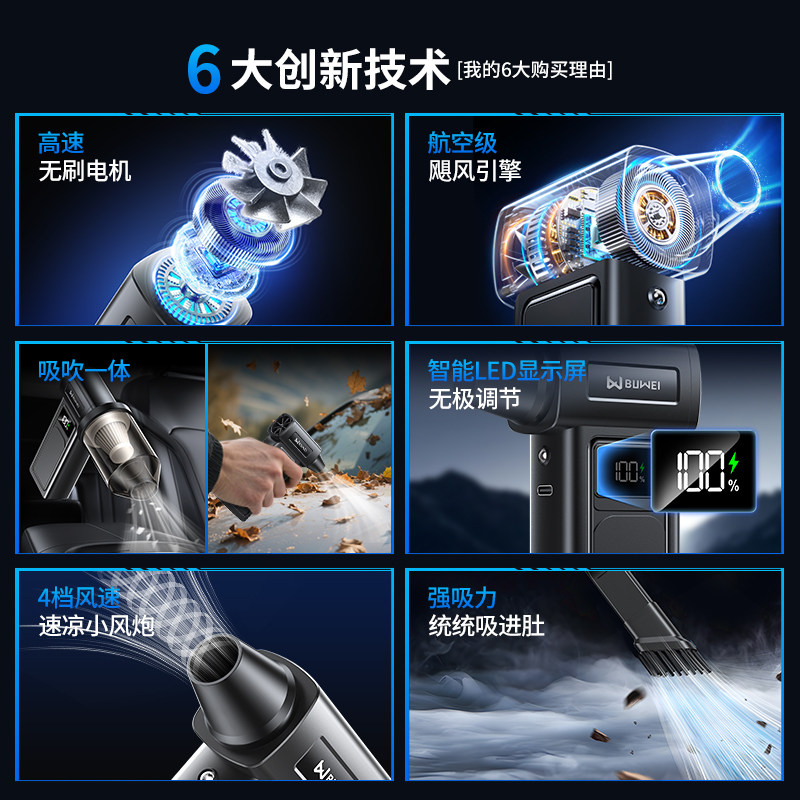 埠威BUWEI【SU7X】暴力无刷涡轮涵道吹雪神器汽车载便携式吹水吹干吹灰除尘风枪高速大风力手持式超强吹风机