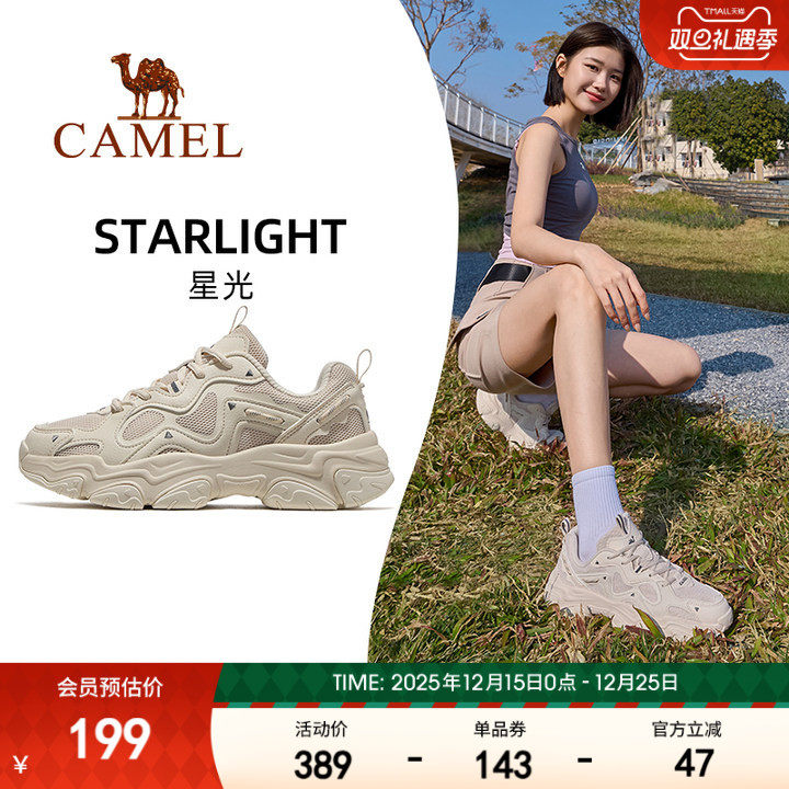 骆驼星光运动鞋女2025新款鞋百搭增高老爹鞋透气女鞋休闲鞋慢跑鞋