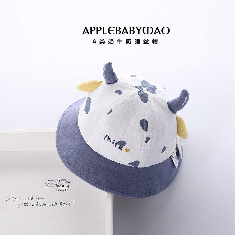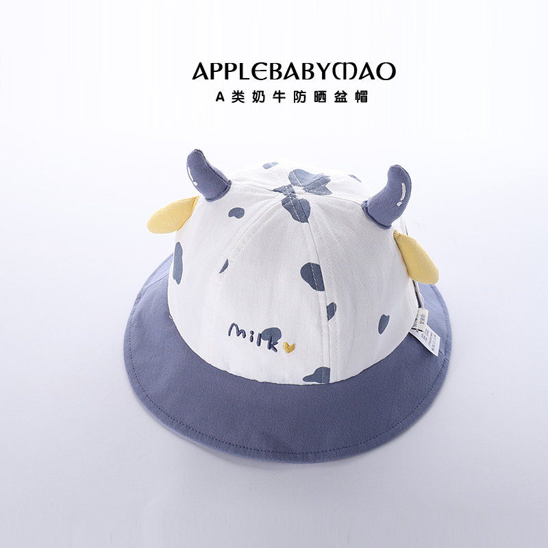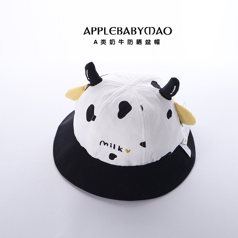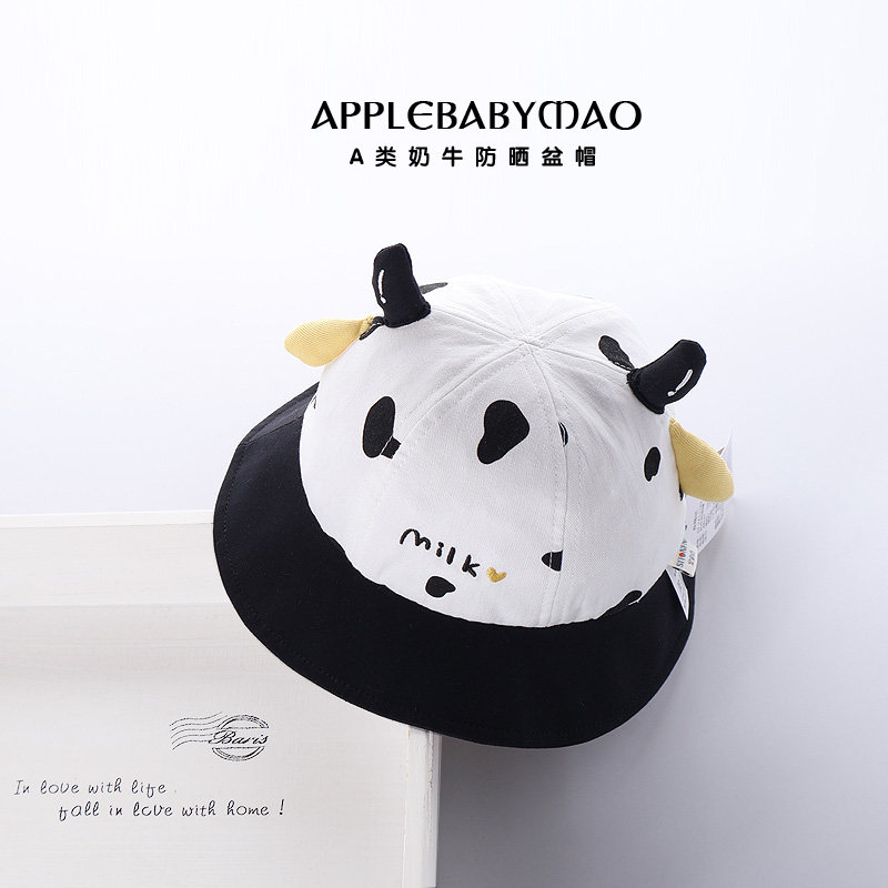 春秋季宝宝帽子男童渔夫帽可爱卡通奶牛外出遮太阳帽女孩纯棉盆帽