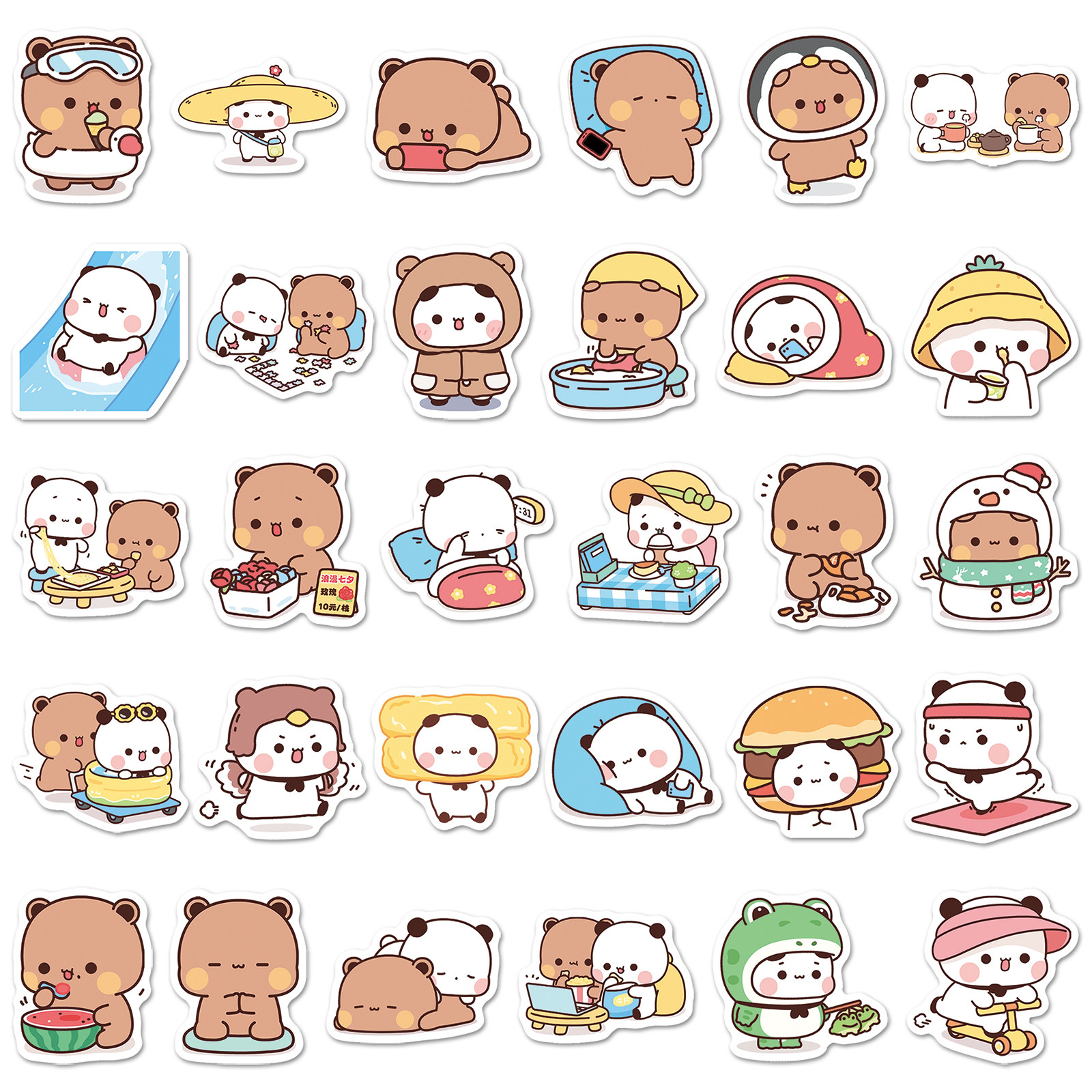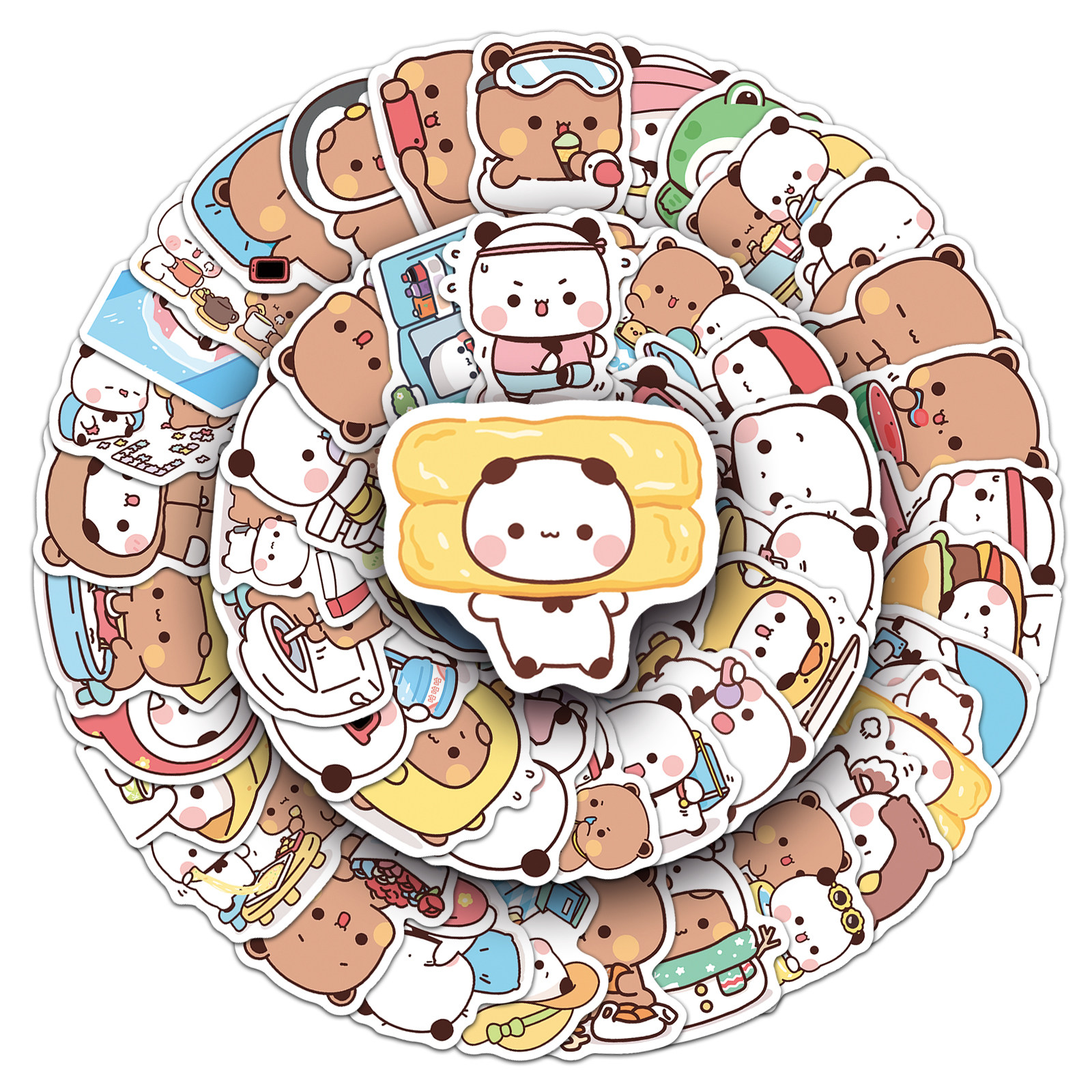 120张一二和布布贴纸ins风可爱小熊猫情侣手帐创意DIY防水装饰电脑桌面周边文具盒水杯充电宝iPad行李箱贴纸