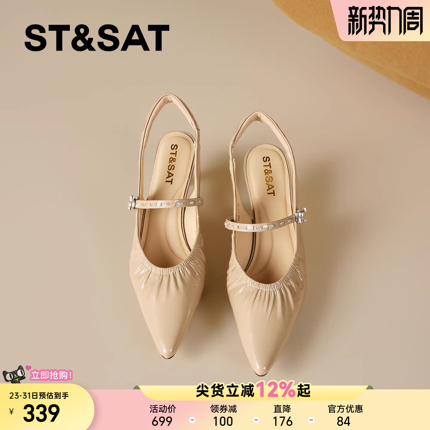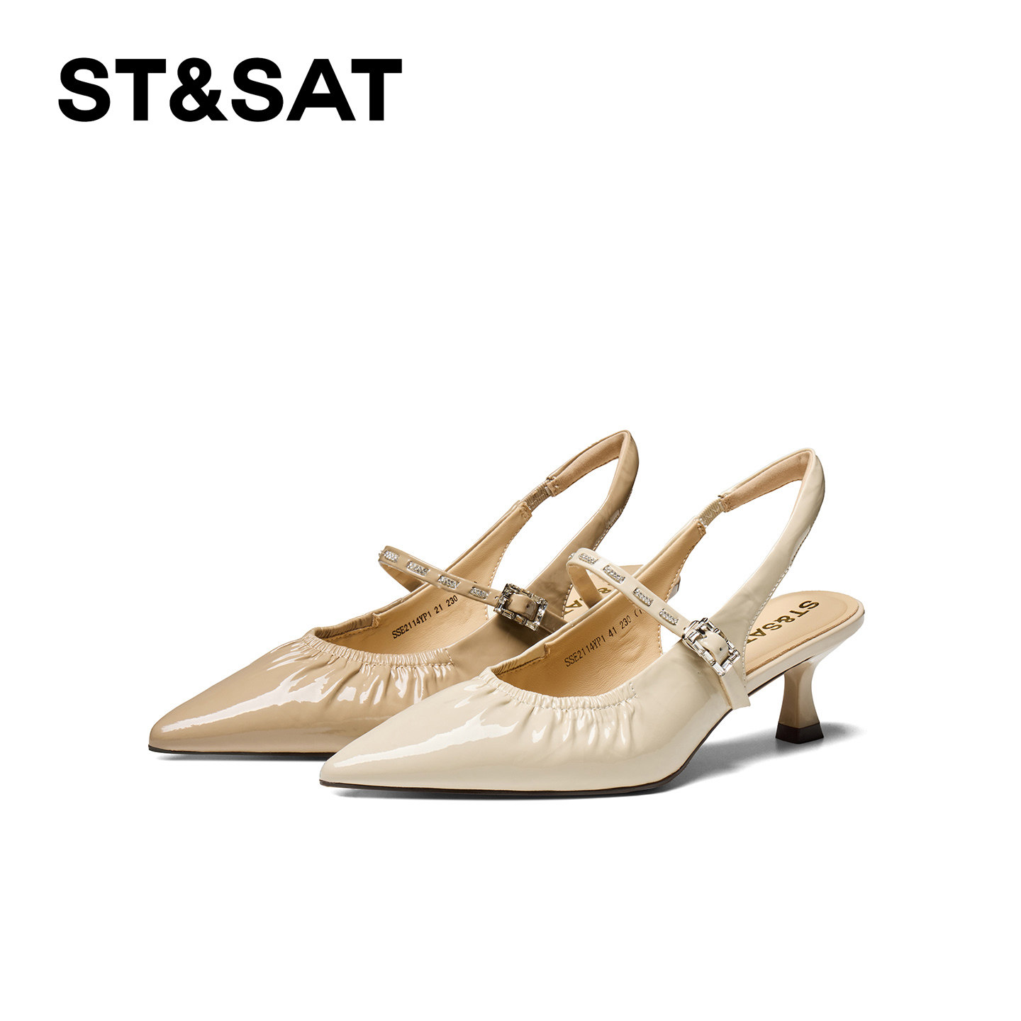 星期六真皮尖头浅口包头凉鞋女2026年夏季新款褶皱轻便细跟高跟鞋