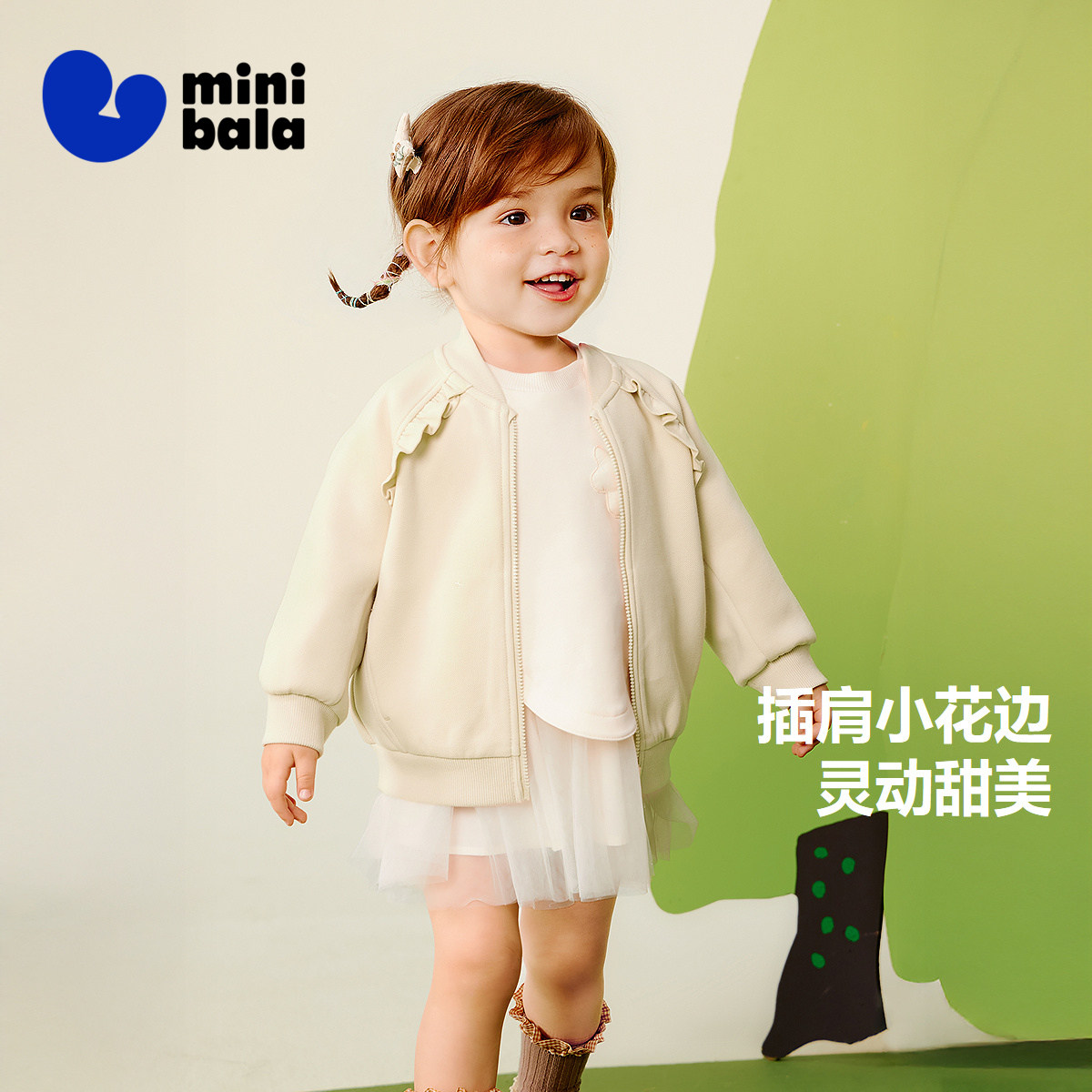 迷你巴拉巴拉女童花边棒球服外套儿童透气舒适可爱上衣春新品
