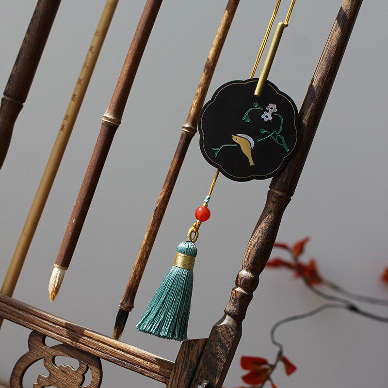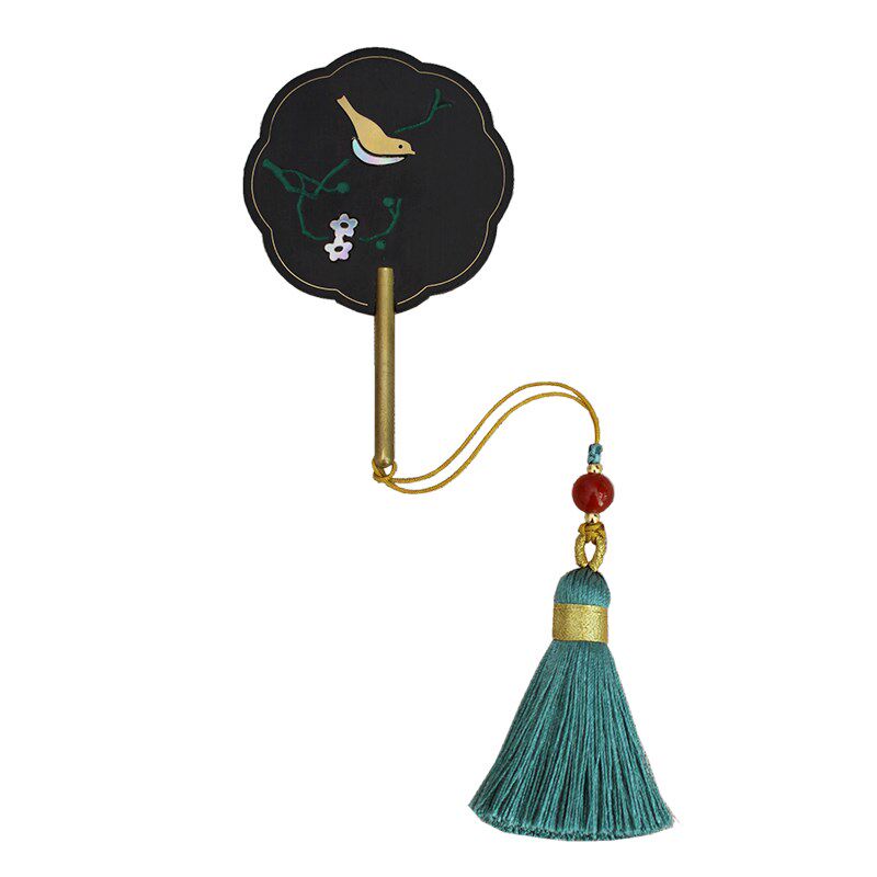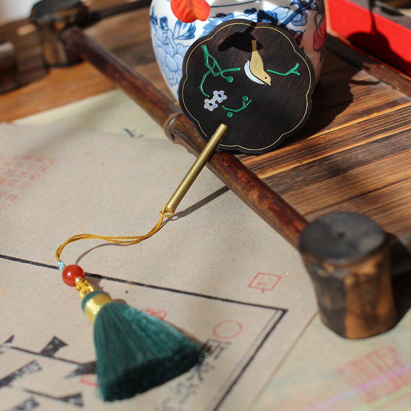 轻罗小扇扑流萤 螺钿镶嵌古w风木质团扇黑檀木书签礼物 定制刻字