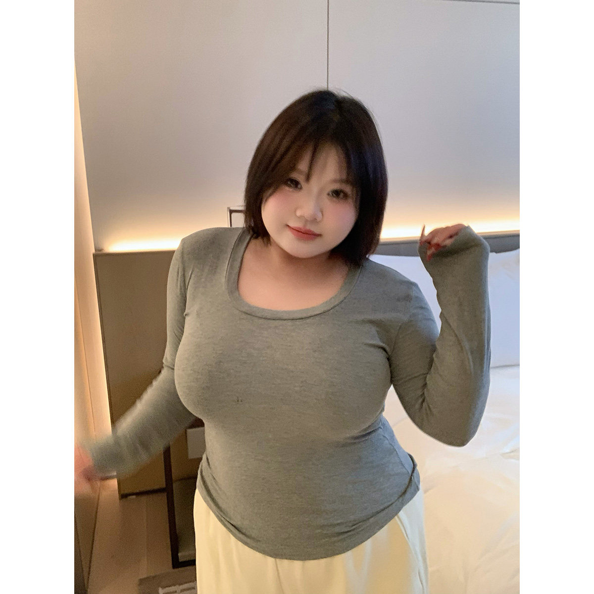 全球花【王炸打底】大码修身显瘦百搭弹性长袖T恤针织打底上衣女