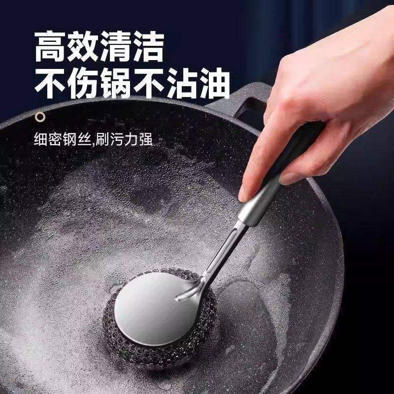 带柄钢丝球刷子长杆洗锅不生锈清洁厨房不伤手洗碗瓶罐不掉渣灶台