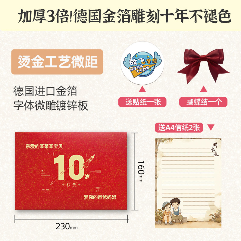 成长礼信封定制十岁生日仪式感礼物男孩女孩专属纪念品可写贺卡