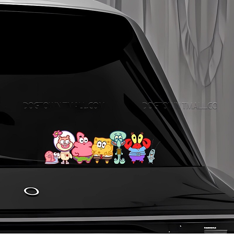 海绵宝宝一家电动机车摩托汽车贴纸车窗车身划痕遮挡遮盖装饰贴画