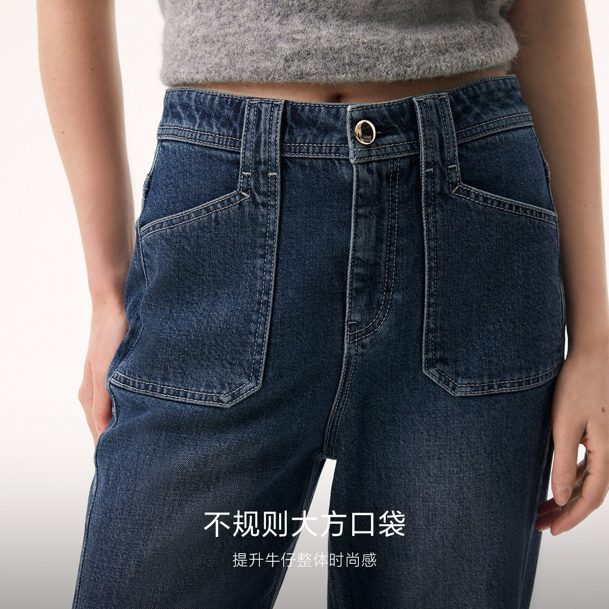 森马牛仔裤女春季打褶长裤宽松2026新款弯刀裤甜酷美式高街阔腿裤