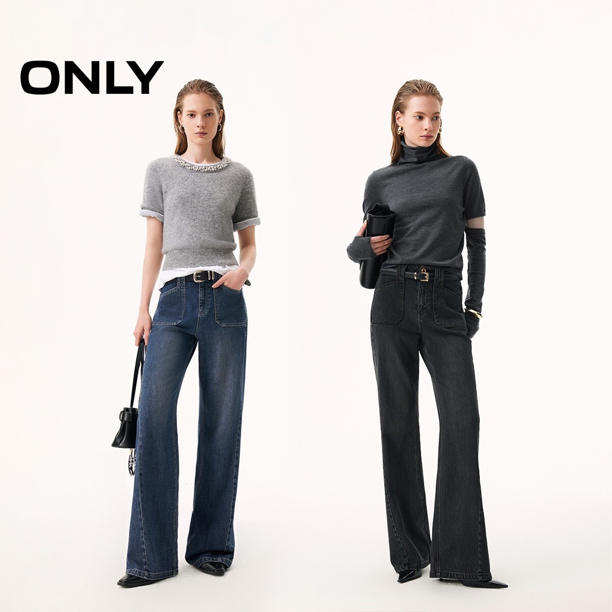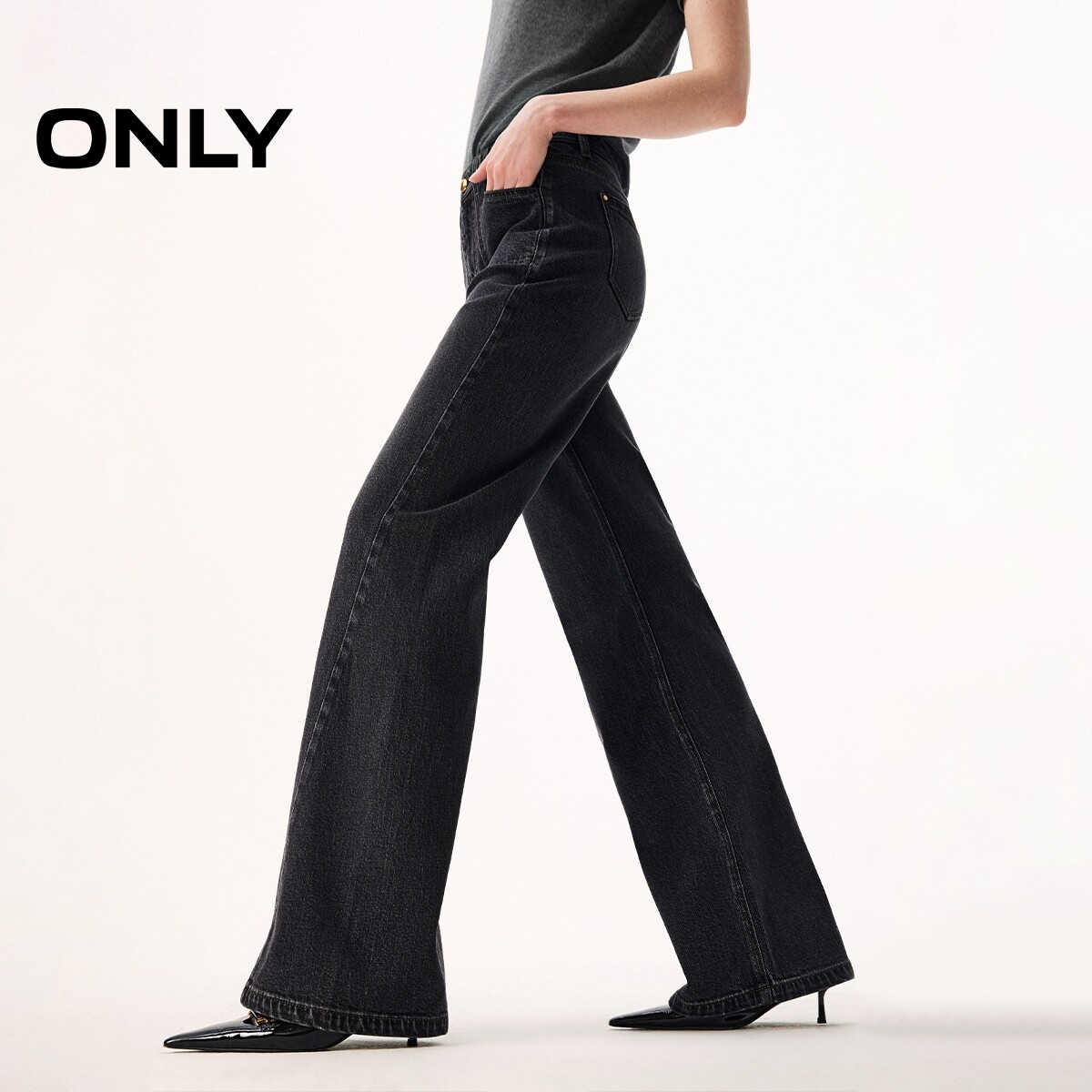 ONLY2026春季新款含莱赛尔高腰显瘦复古磨白水洗斜裁喇叭牛仔裤女