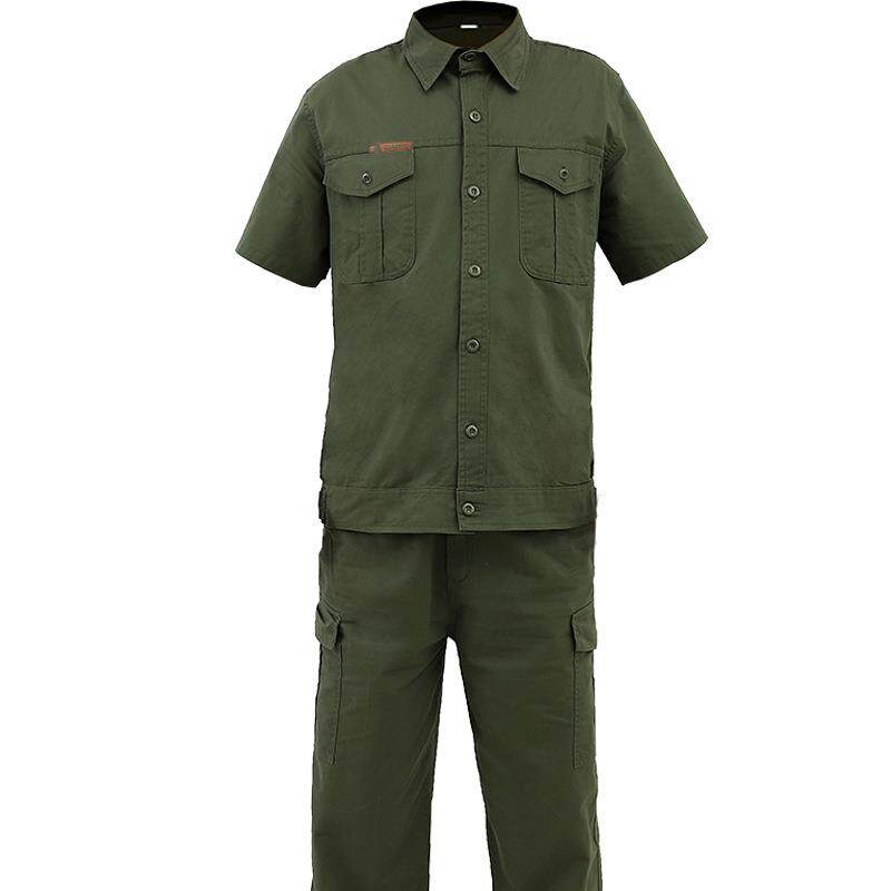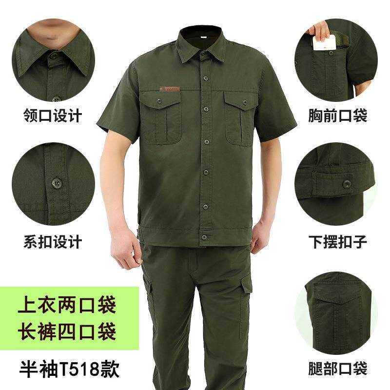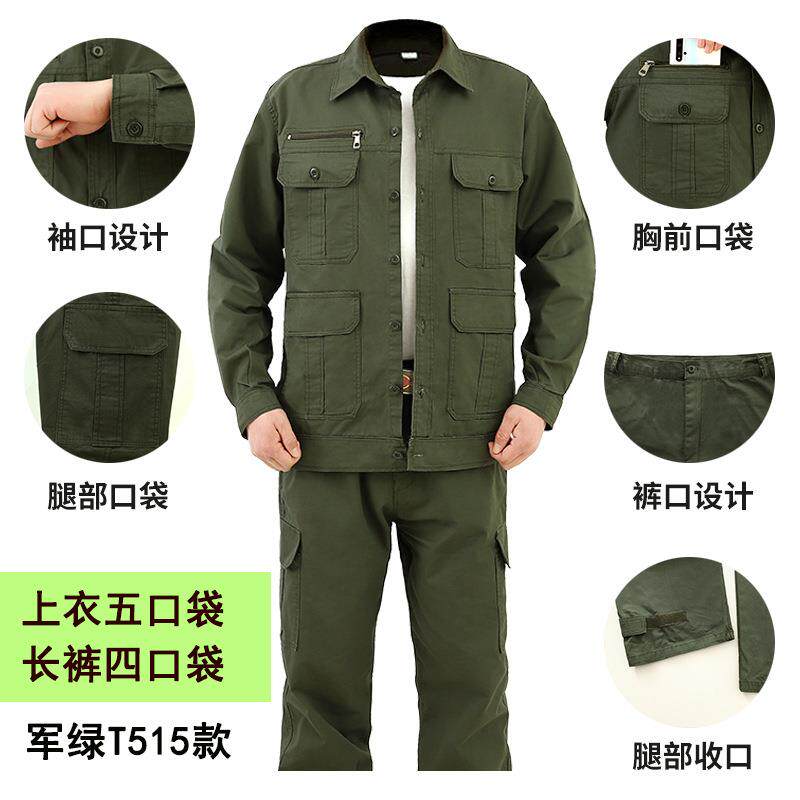 纯棉长袖电工服电焊工作服套装男薄款工装迷彩服劳保服上衣军绿