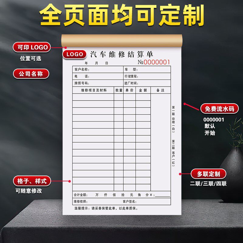 汽车结算单二修理厂销售服务单汽修店接车单修车保养工单