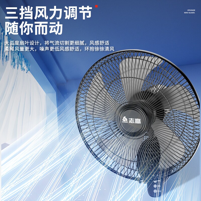 志高壁扇挂壁电风扇家用大风力壁挂式静音墙壁风扇挂墙遥控机械式