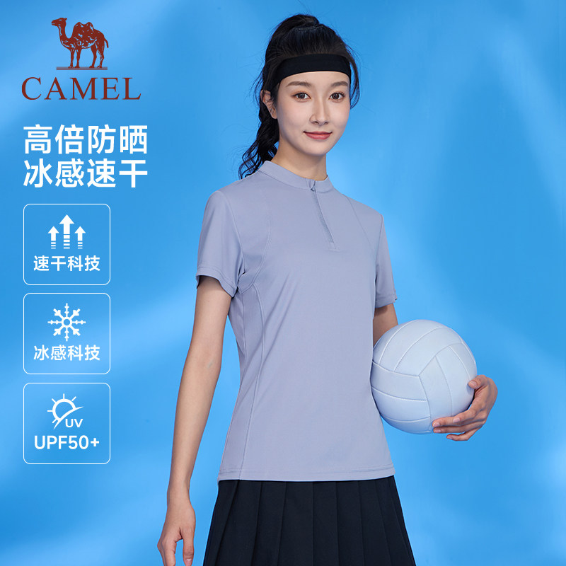骆驼运动POLO衫女士2026春夏新款短袖T恤吸湿速干健身跑步网球服