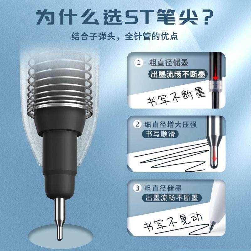 葫芦头按动式st笔芯大容量速干中性笔替芯黑色0.5学生用考试黑笔