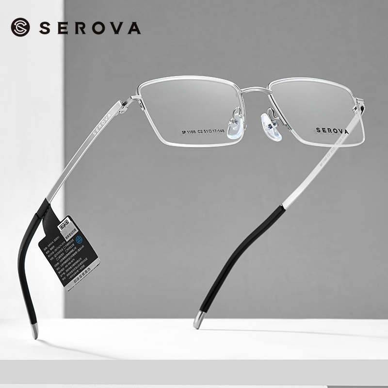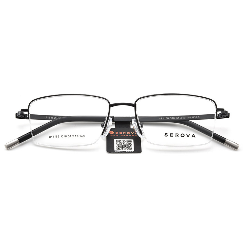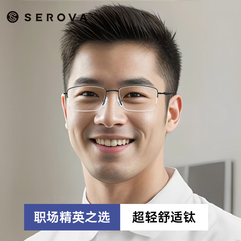 施洛华近视眼镜男士钛架细边方框商务黑色半框眼镜架可配镜SP1166
