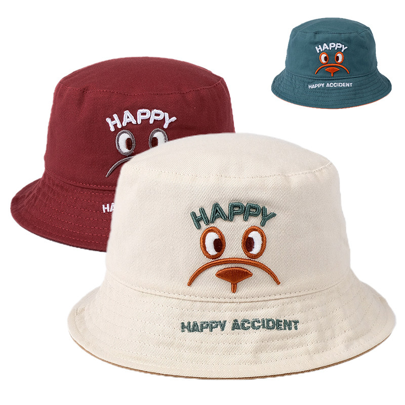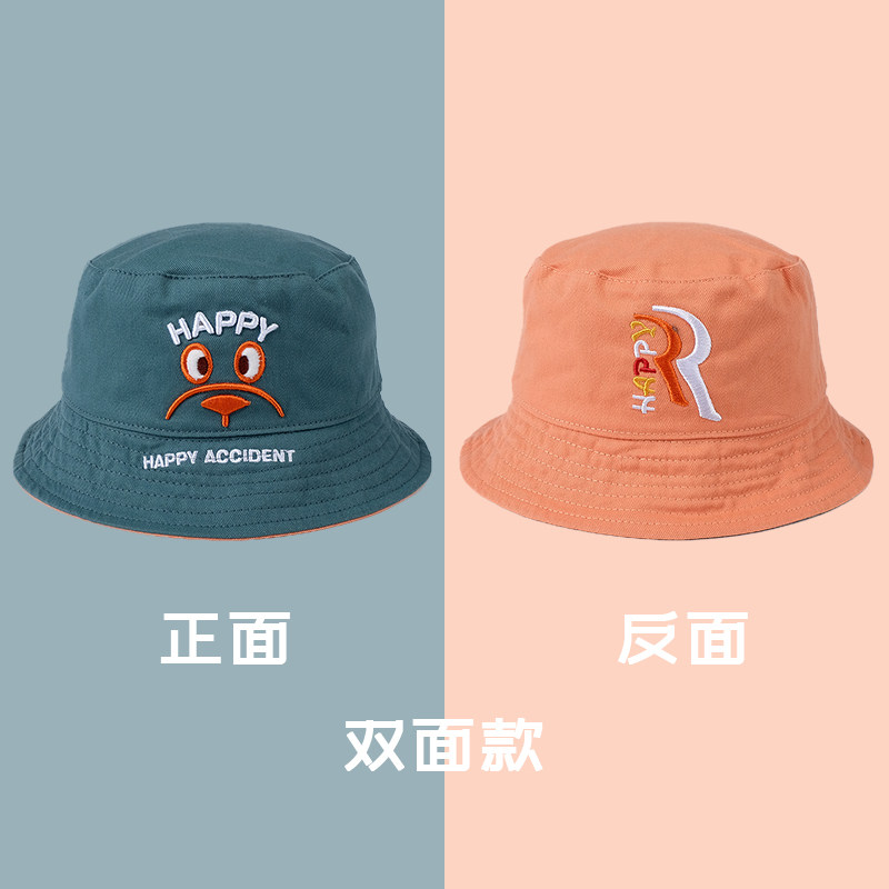 春秋款儿童渔夫帽纯棉防晒遮太阳帽子男女宝宝双面平顶帽休闲盆帽