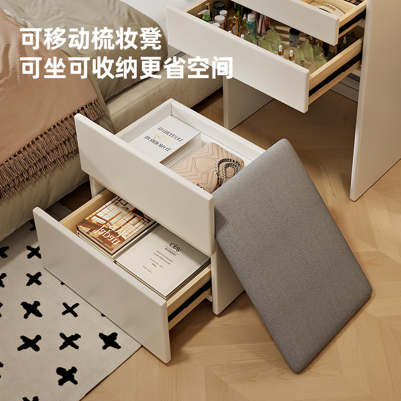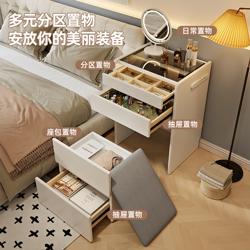 新款梳妆台小户型奶油风化妆桌卧室现代简约迷你床头收纳柜一体