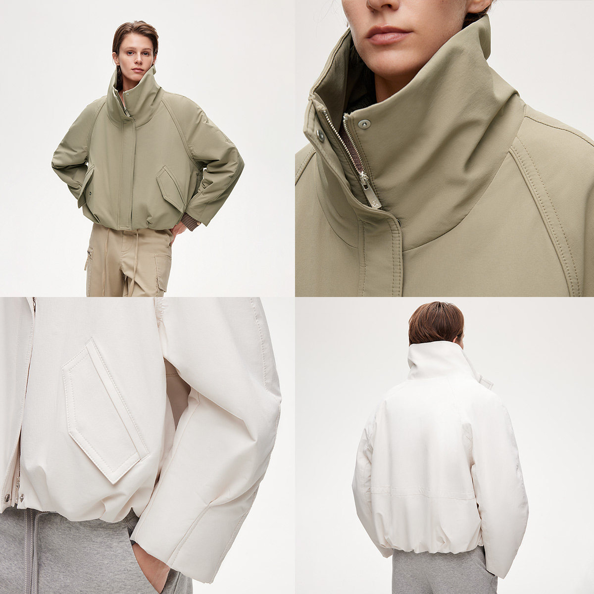 挺括立领棉服,立体花苞造型下摆