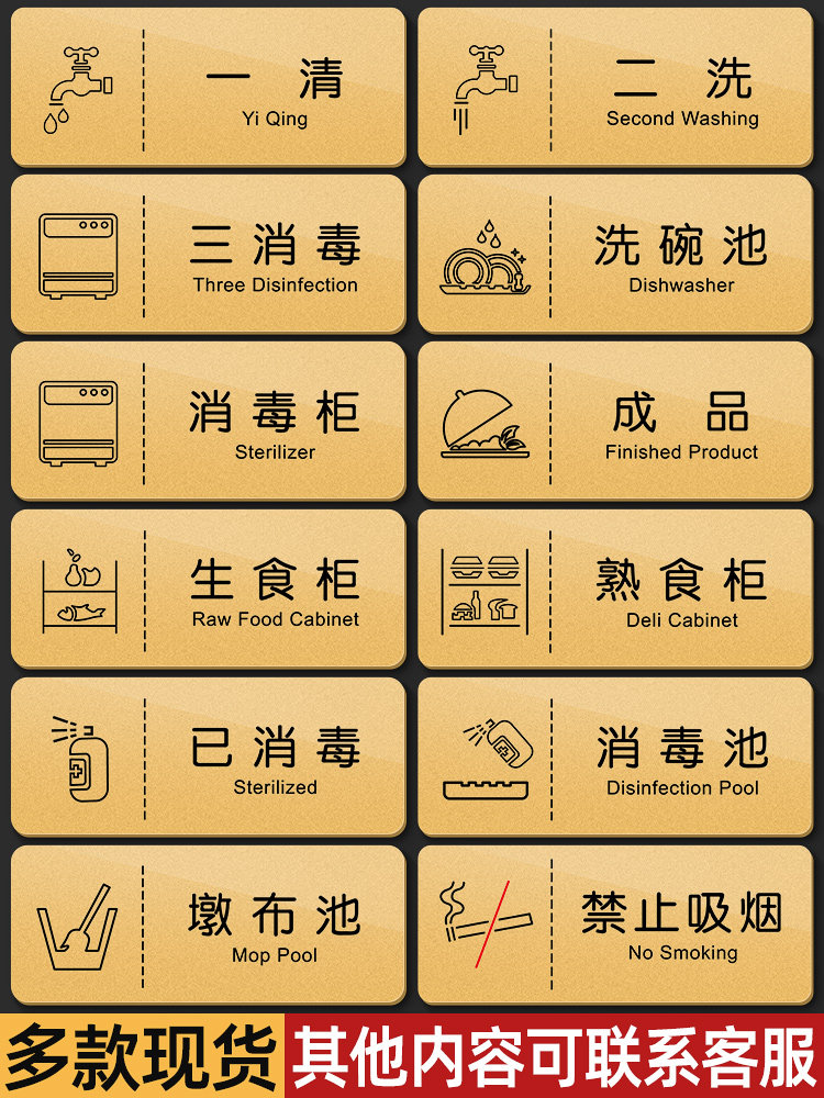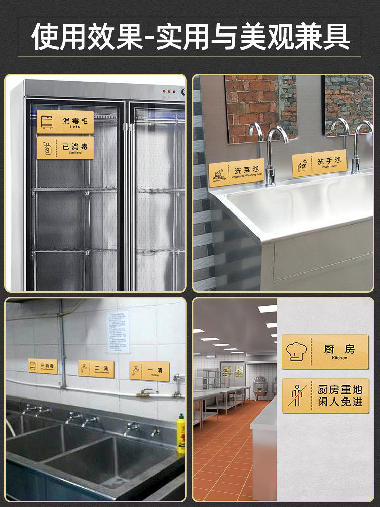 亚克力厨房冷藏柜消毒柜消毒池警示贴餐饮标识标牌食品柜留样已消毒提示牌标识贴牌定制一清二洗三消毒标签贴