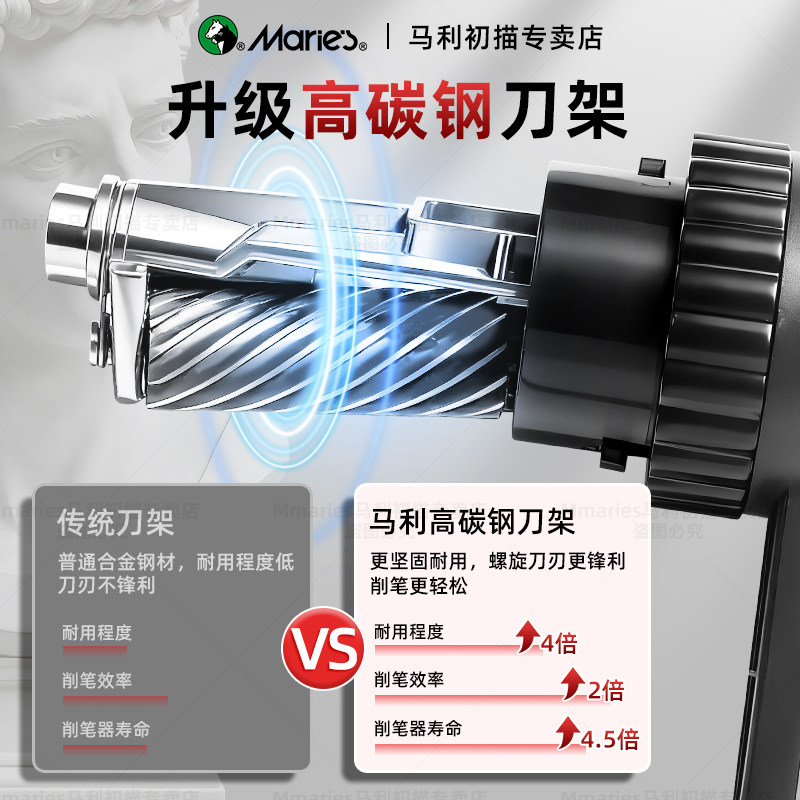 马利素描削笔器素描炭笔铅笔刀卷笔刀专业美术生专用便携式小型刨笔机儿童铅笔手摇削笔刀转笔刀小学生削笔机