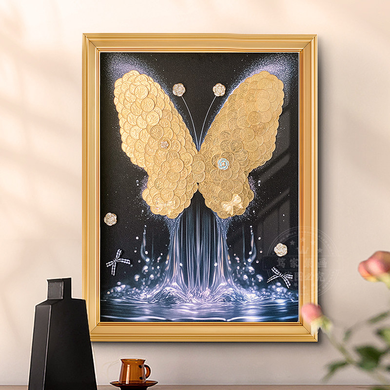 5毛钱蝴蝶发财树相框手工diy材料包桌面招财摆件乔迁客厅开业礼物