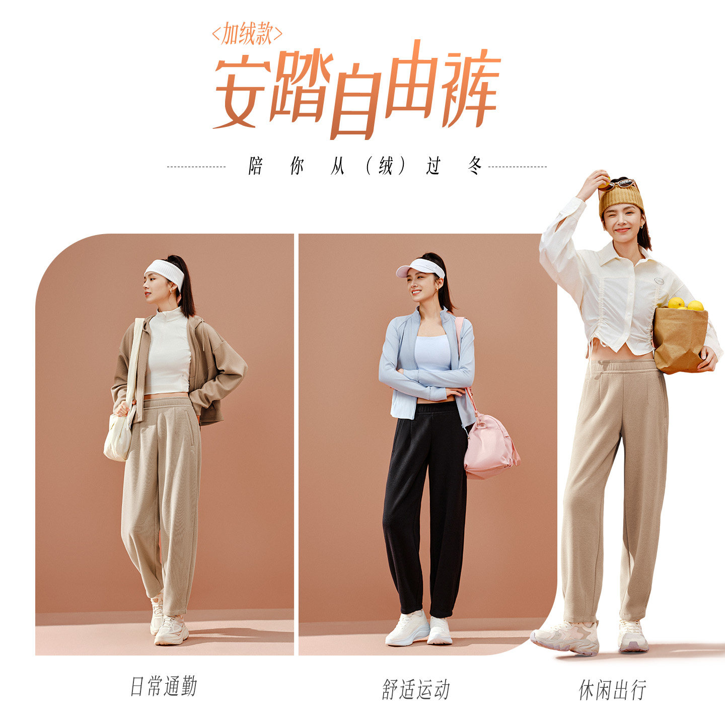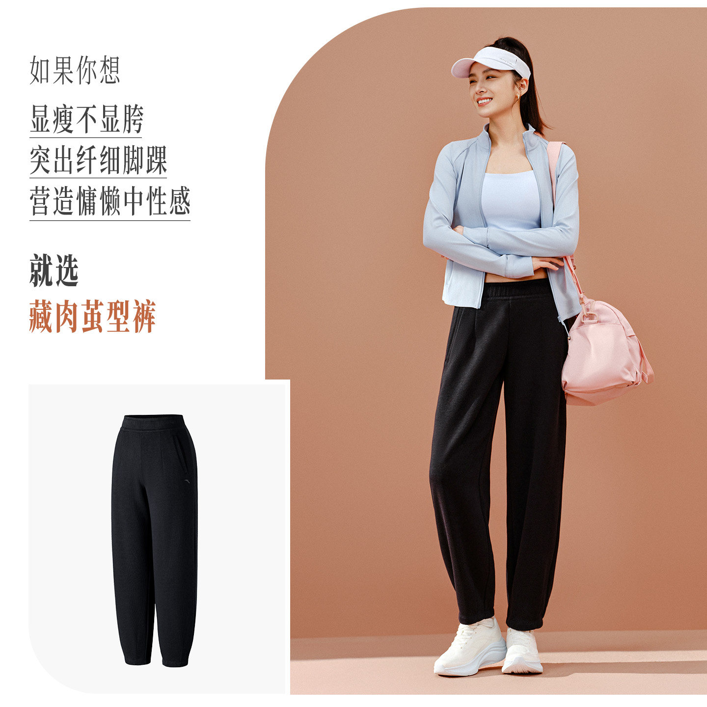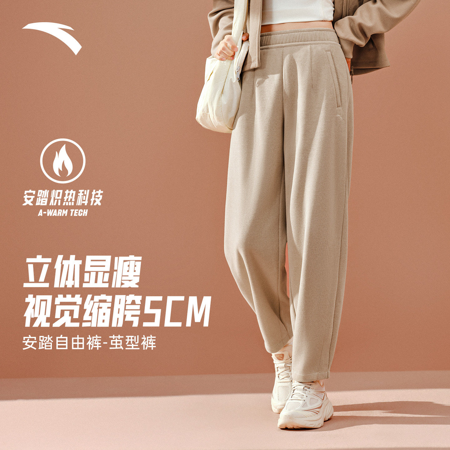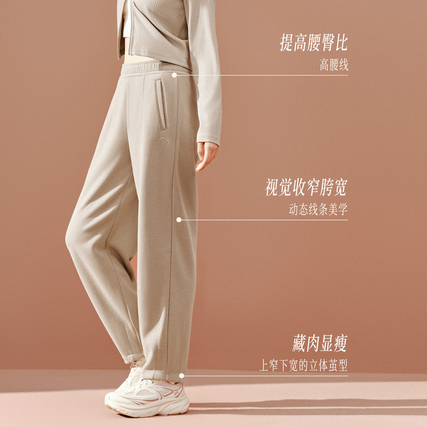 安踏茧型裤女款2025新款秋冬加绒保暖防风修腿遮胯宽松针织长裤子
