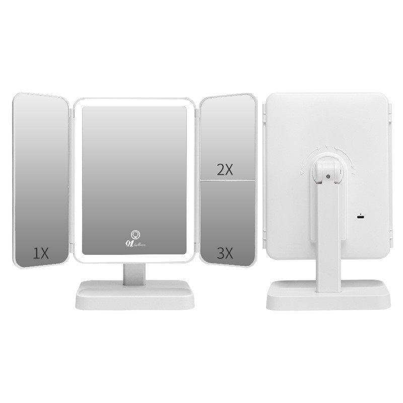 嘉瑶led三折镜子镜子带灯充电款台式ins桌面高级折叠发光梳妆化妆