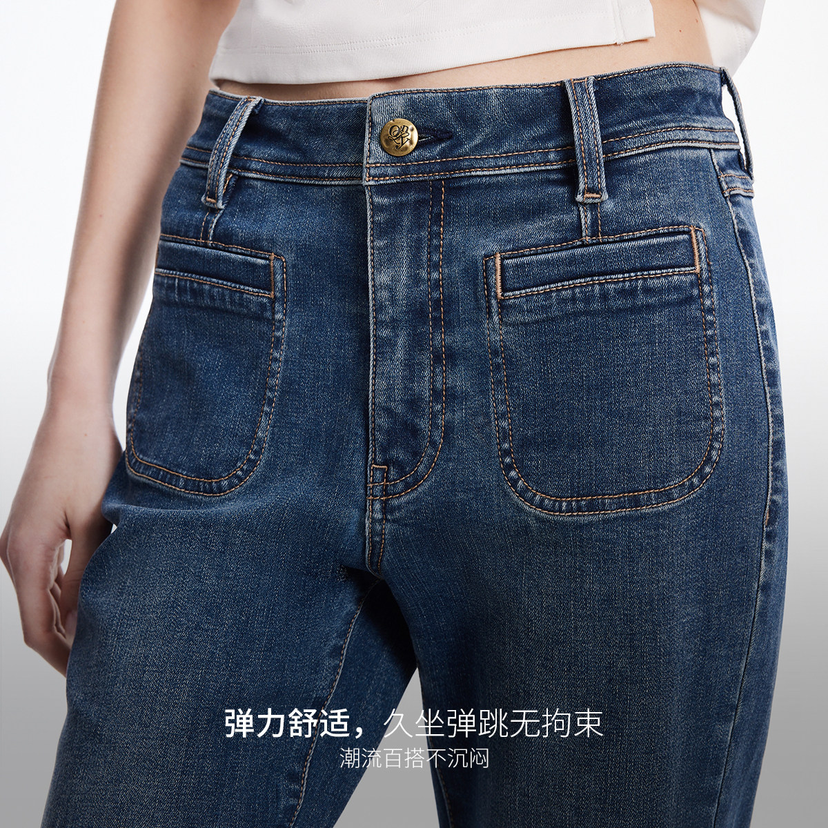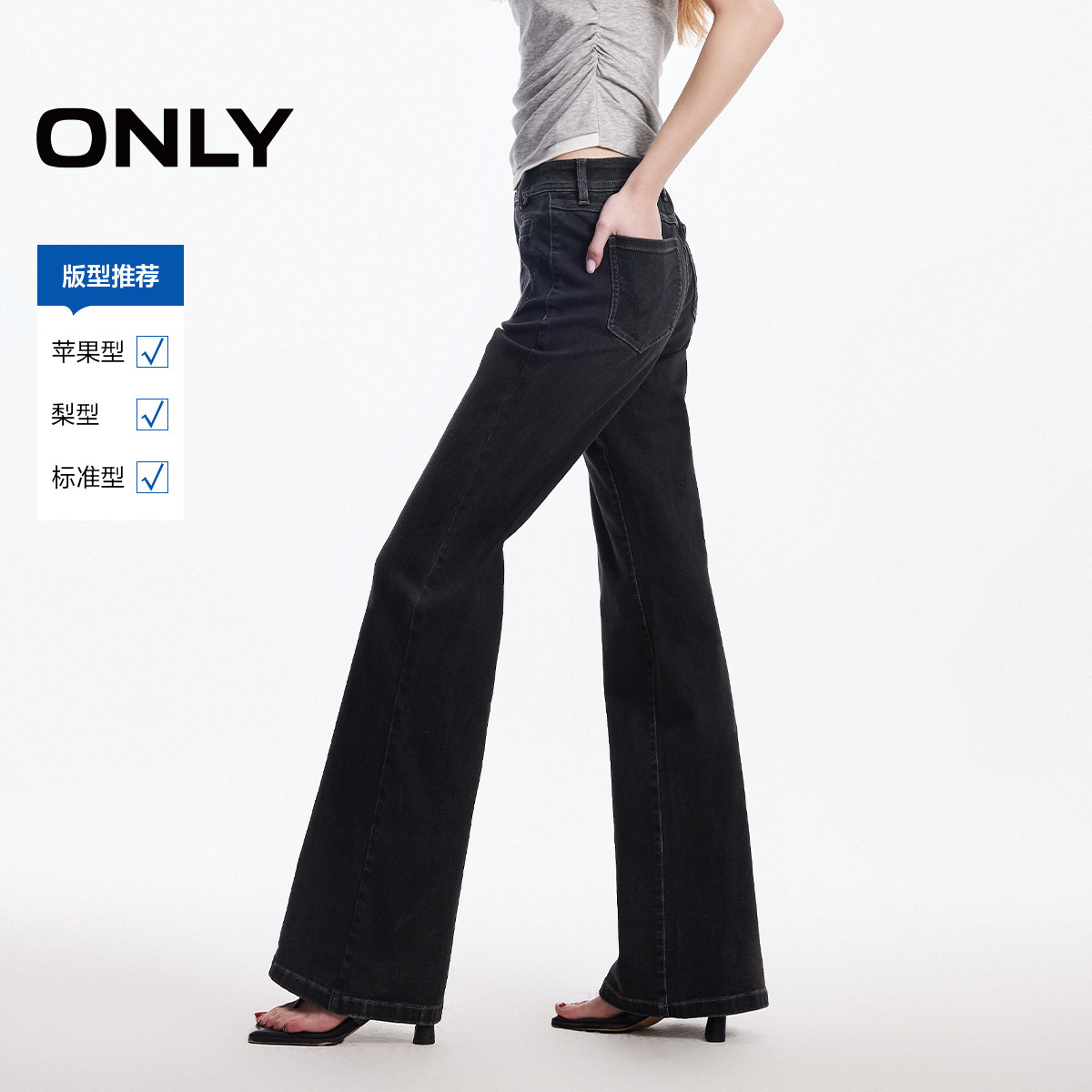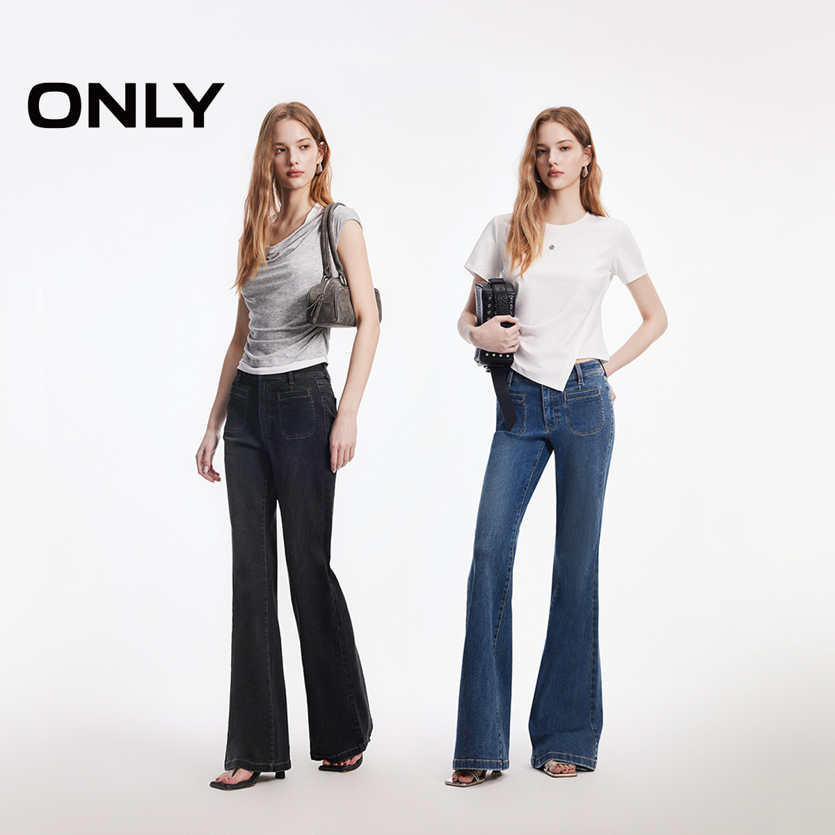 ONLY2026春季新款复古圆角口袋高腰修身长裤喇叭裤超模裤牛仔裤女